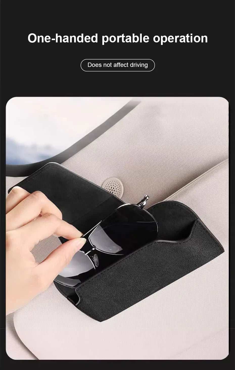 4.PERFECT DESIGN - No obstruction of vision. Magnetic closure design of sunglasses holder for car allows you to open and close it easily with single hand without having to look up