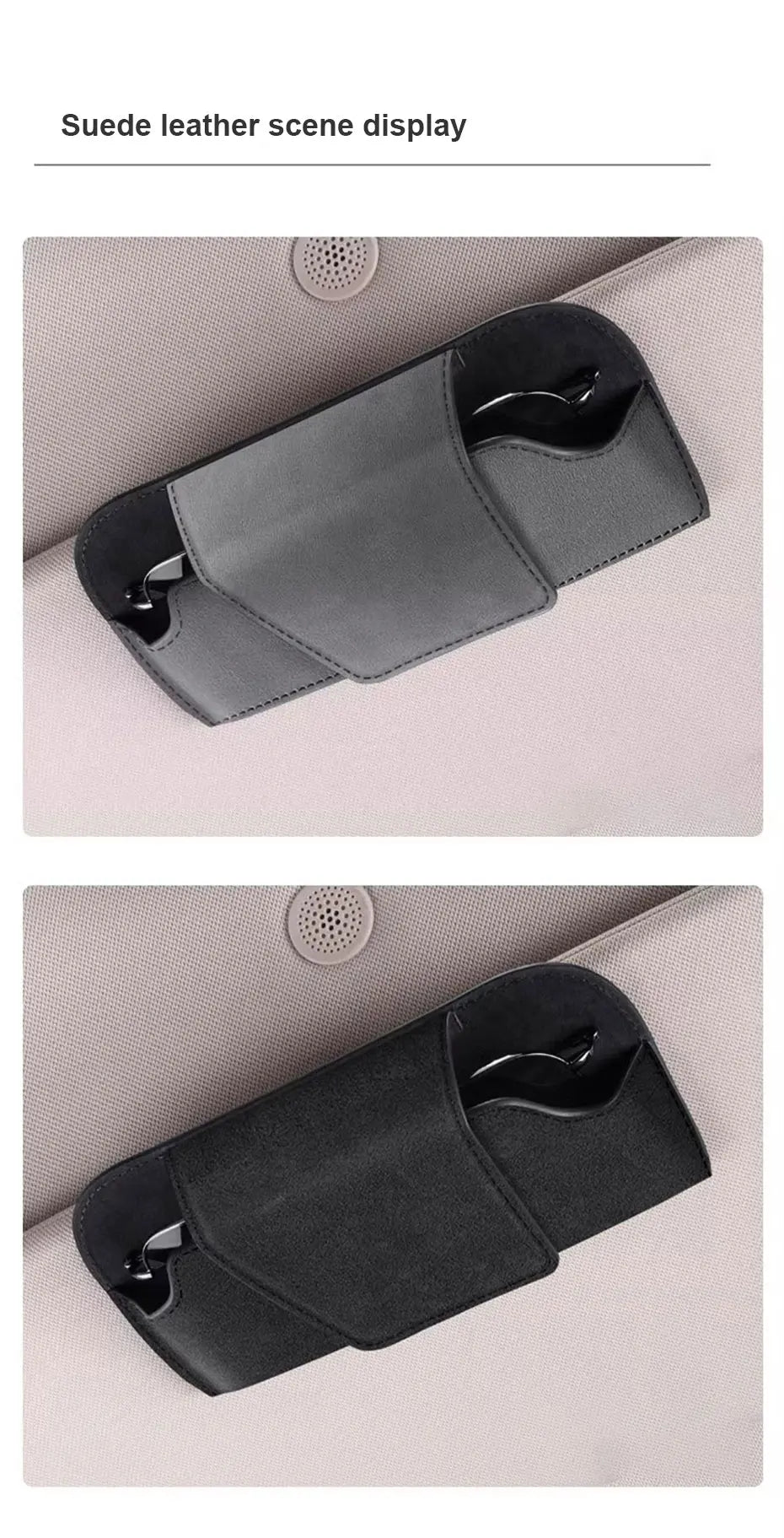 2. HIGH QUALITY - The car sunglasses storage box is made of high-quality Leather, with smooth surface, and inner velvet material is resistant to high temperature and impact to avoid scratches