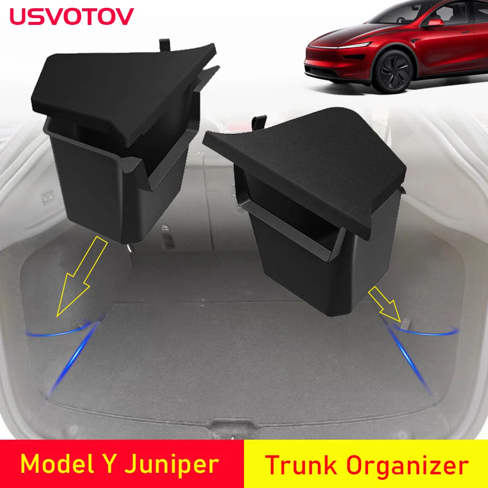 USVOTOV Trunk Organizer for Tesla Model Y Juniper Launch Refresh 2025 Rear Trunk Storage Bins Side Box Organiser TPE Accessories