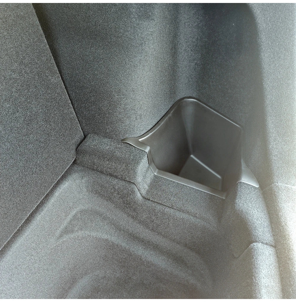 ✅ Easy to clean- The original design of Model Y trunk is made of flocking material, it is difficult to clean. The usvotov trunk side storage box is made of tpe material, it can help your trunk keep organizer and easy to clean ;
