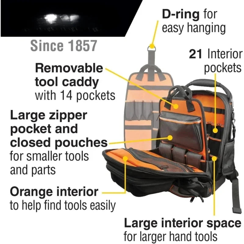 Tool caddy has a zipper pocket and closed pouches for small tools and parts as well as open pockets and straps ideal for long drivers