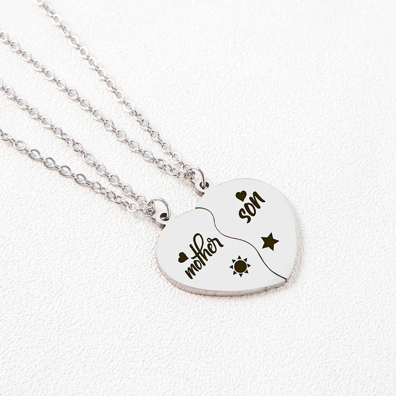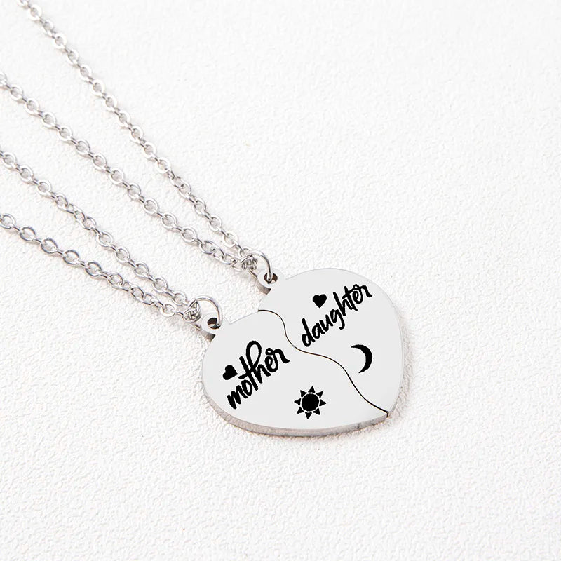 2 pcs/set mãe filha filho coração enigma pingente colar de aço inoxidável sol lua colares para mãe crianças presente