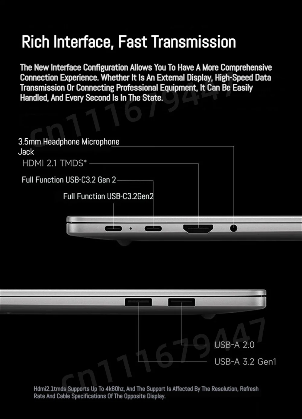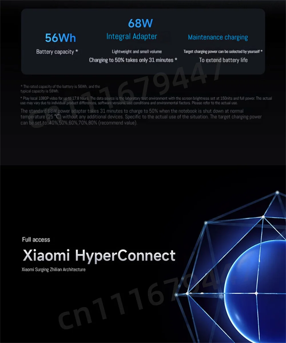 Fast charging: With a 68W all-in-one adapter, the laptop can be charged to 50% in 31 minutes when it is turned off at room temperature (25°C) without any additional devices connected