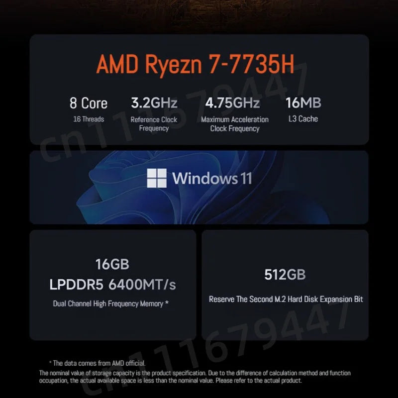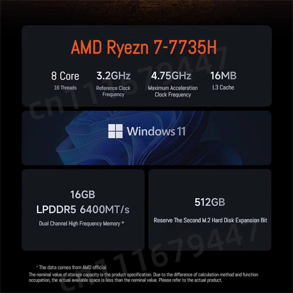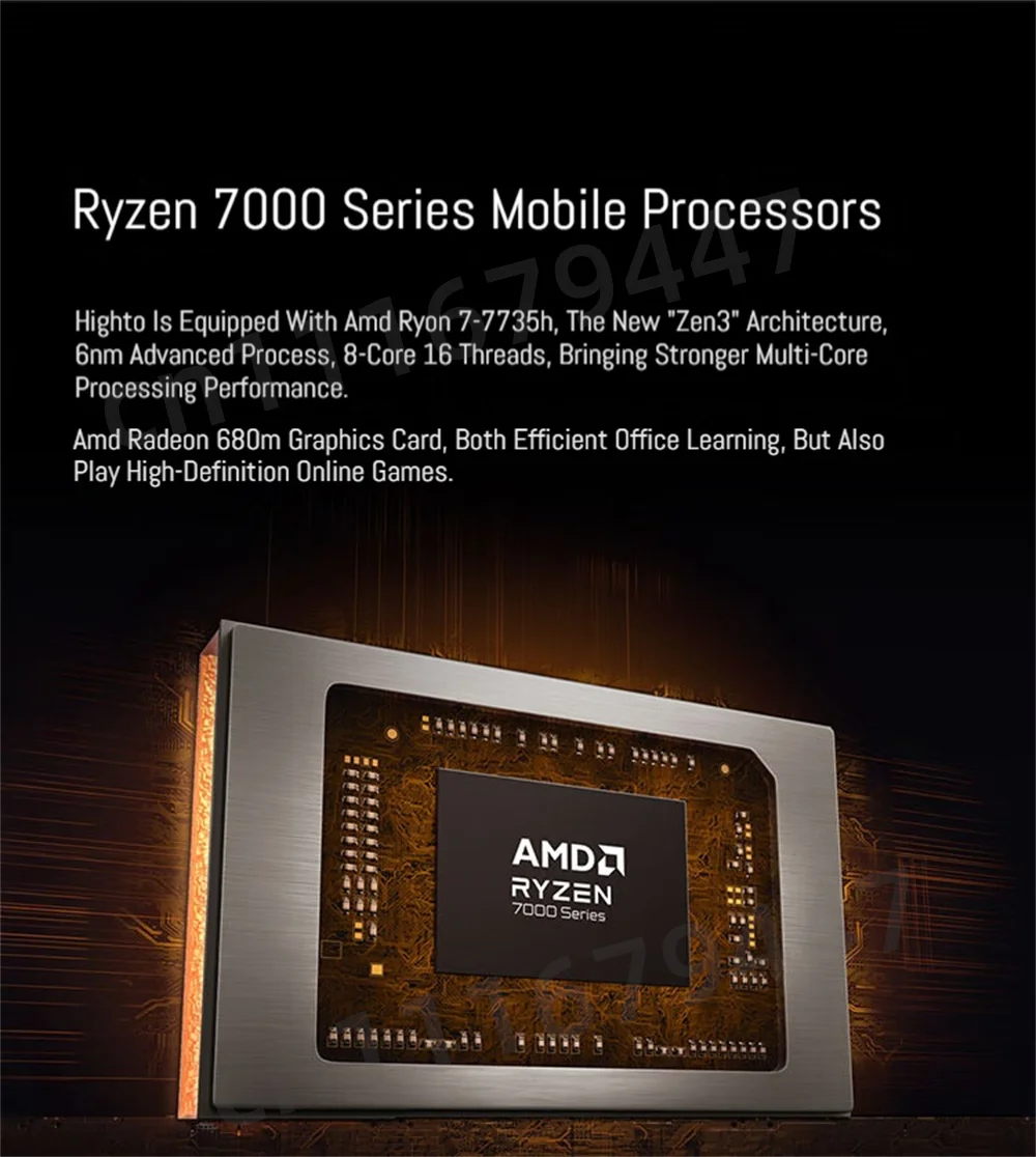 Highto ls Equipped With Amd Ryon 7-7735h, The New "Zen3* Architecture.6nm Advanced Process, 8-Core 16 Threads, Bringing Stronger Multi-Core Processing Perormance
