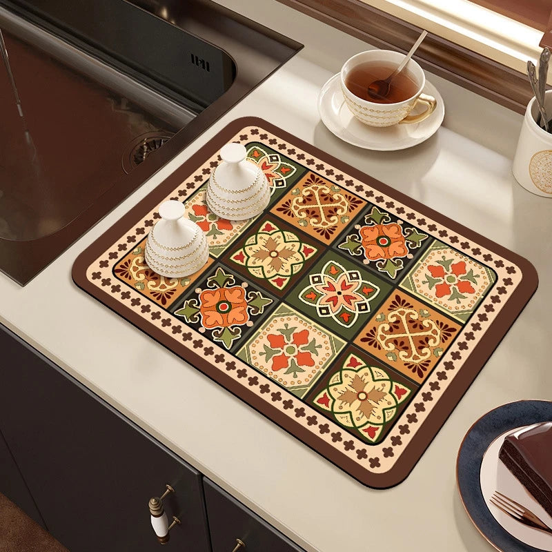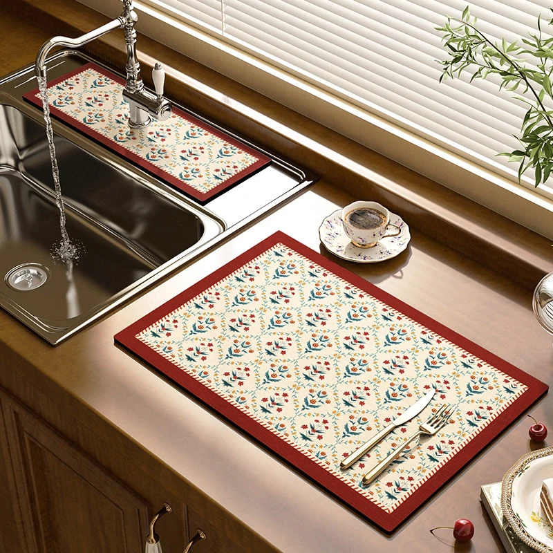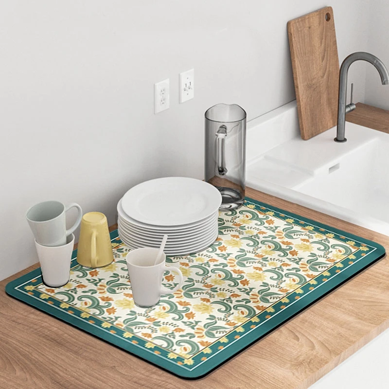 Kitchen Drying Mat Quick Dry Coffee Mat Absorbent Dish Placemat Anti Slip Table Cup Drying Mats Table Decoration Accessories
