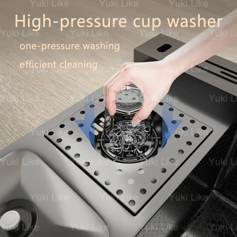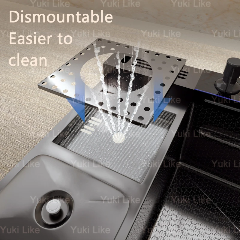 Stainless Steel Kitchen Sink Waterfall with Trash Can Cup Wash Household Apartment Countertop Washbasin Large Single Sink
