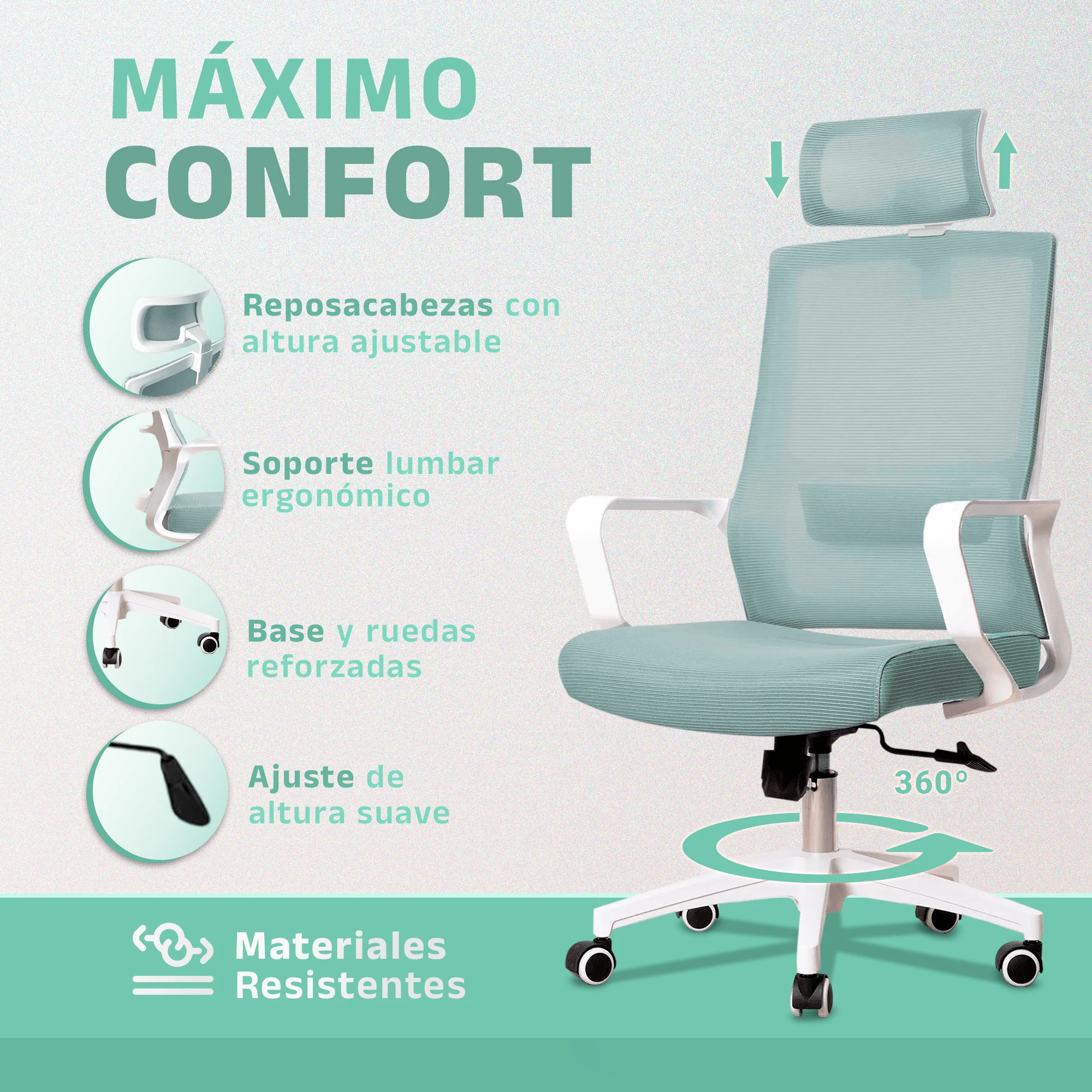 • Quality material: the breathable mesh allows optimal air circulation, preventing heat and sweating, even during long hours of work.The 360 swivel wheels° They are smooth and silent, ideal for any floor surface.