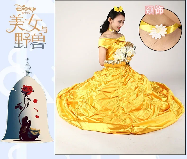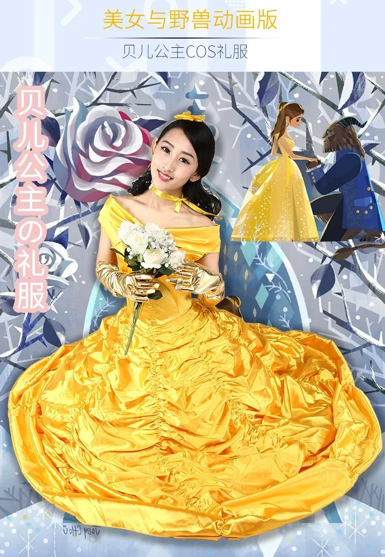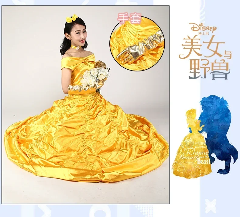 Items: New adults cosplay christmas womens princess ball gown beauty and the beast belle costume for kids dress yellow gown fancy women