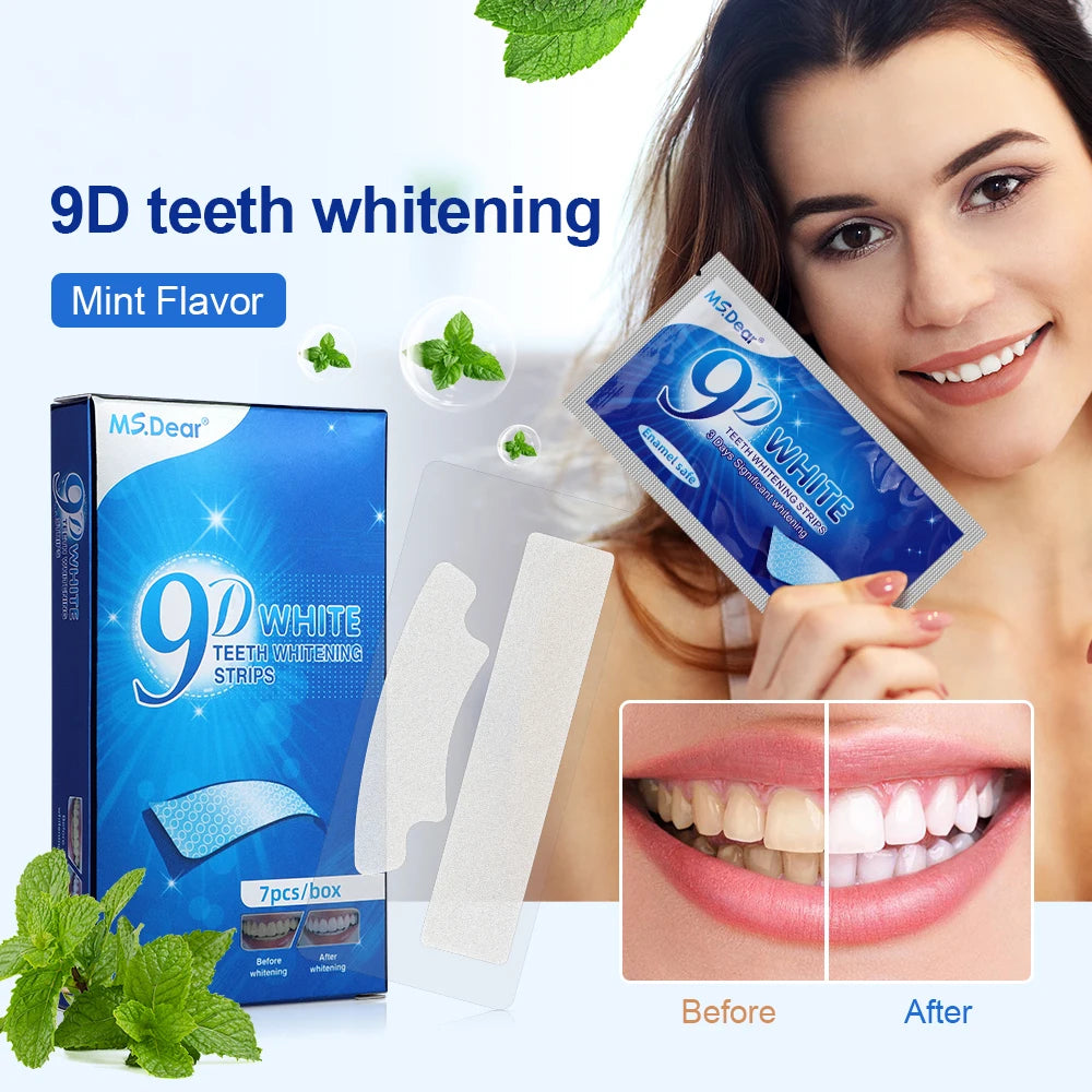 14pcs/box 9D Teeth Whitening Strips Toothpaste Gel Oral Hygiene Care Double Elastic Teeth Bleaching Strips False Teeth Veneers