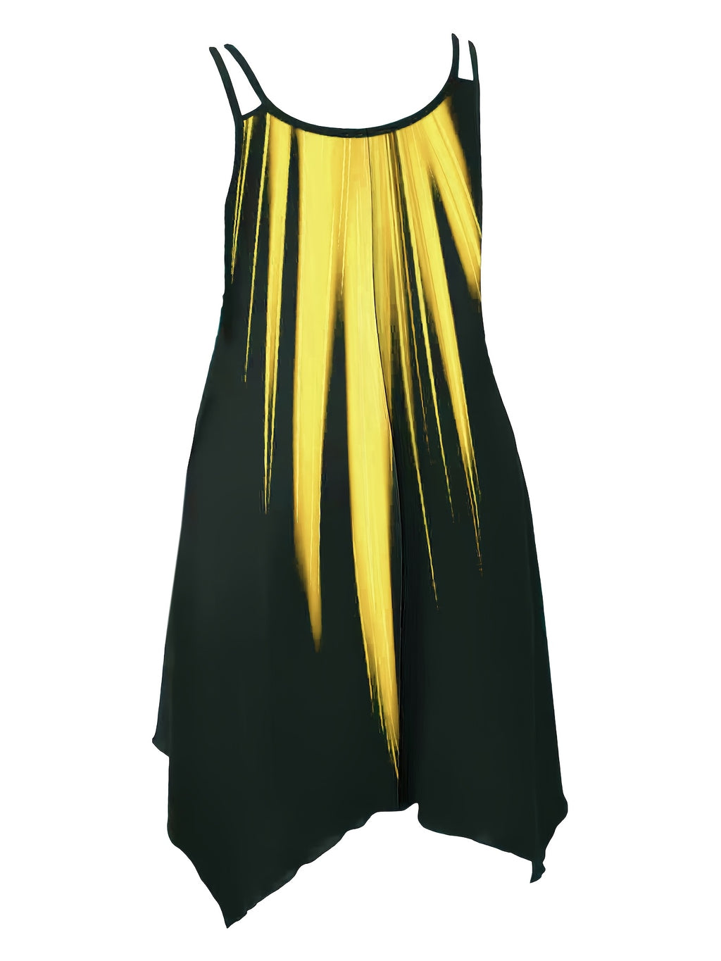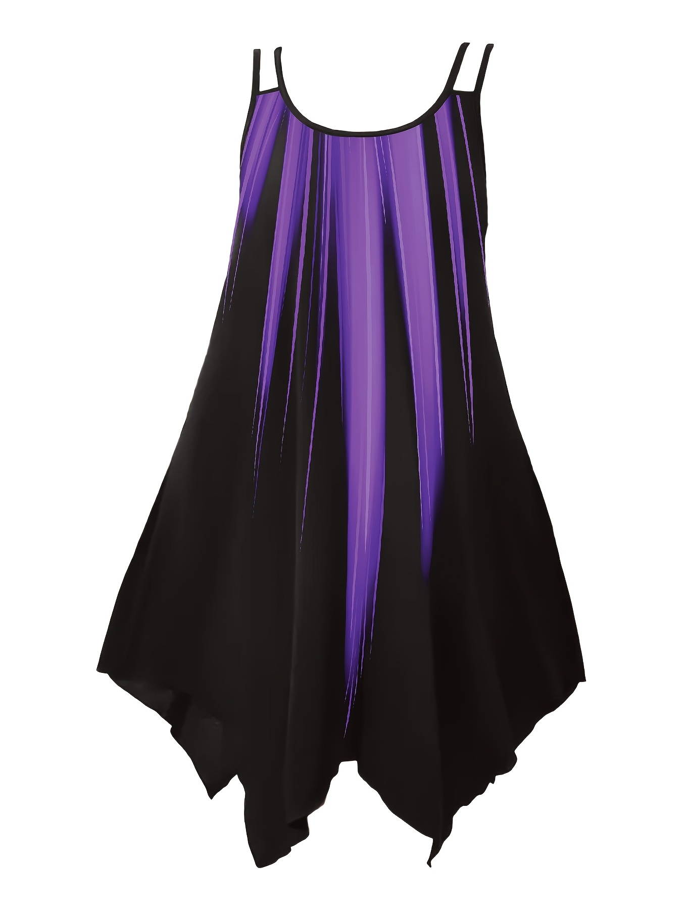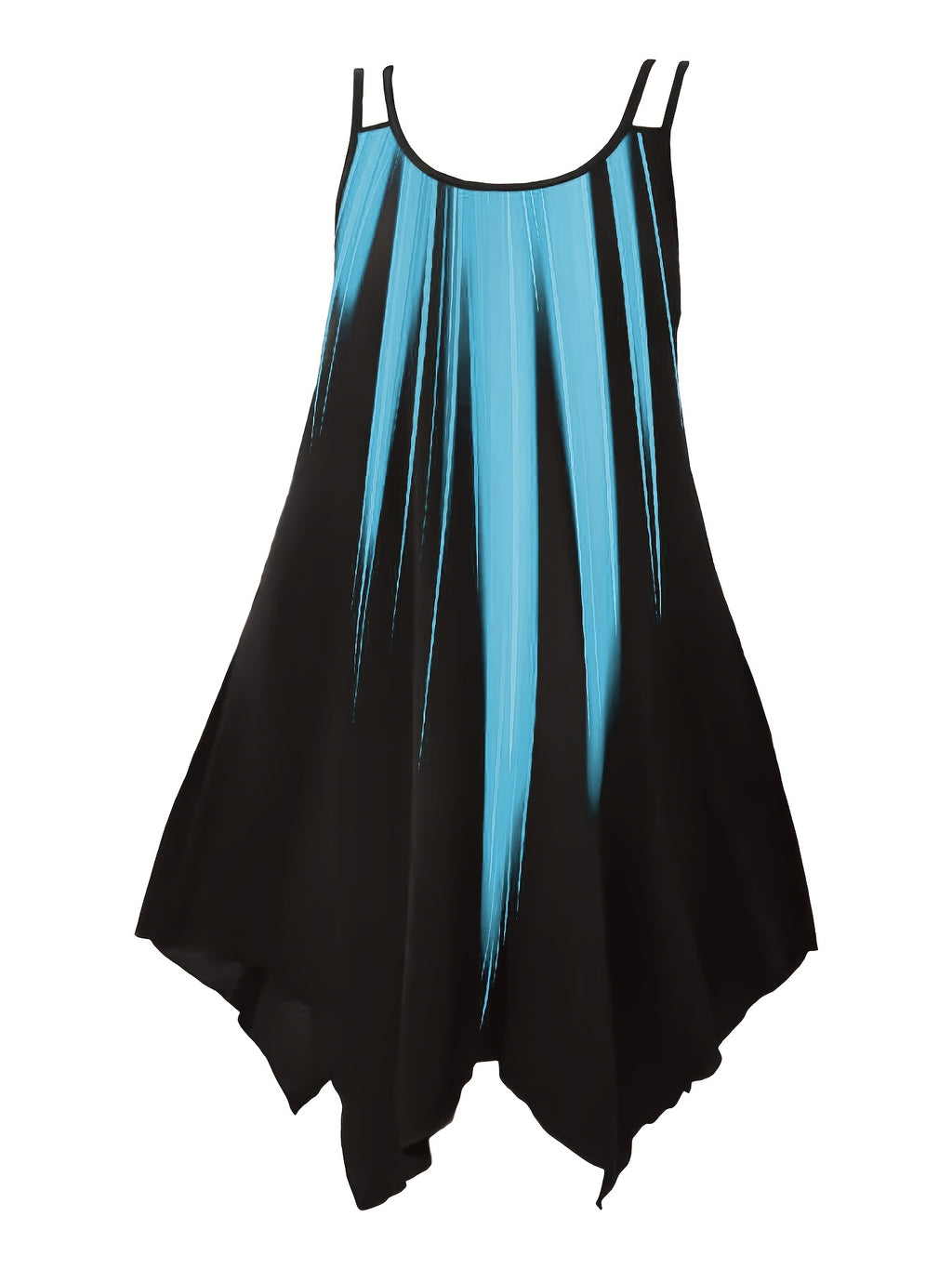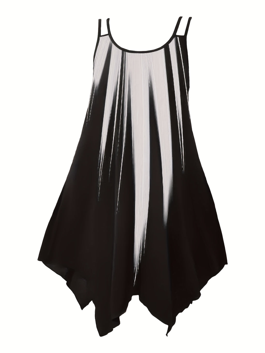 Plus Size Ombre Print Cami Dress, Vacation Style Asymmetrical Hem Sleeveless Crew Neck Dual Strap Dress For Spring & Summer, Women's Plus Size Clothing