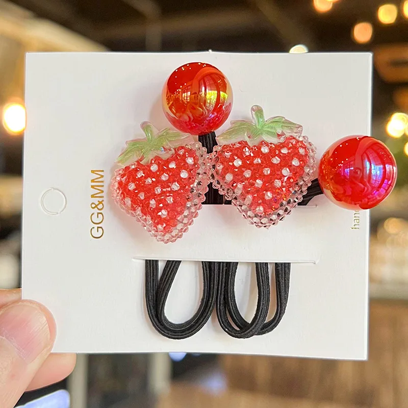 2PCS Lovely Cartoon Morango Doces Meninas Elastic Hair Bands Crianças Princesa Acessórios para o cabelo Crianças Laços de cabelo Baby Headwear Ajude seus filhos a organizar a franja do cabelo