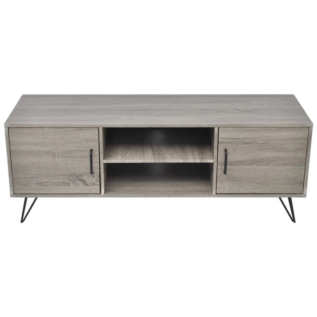 This modern TV furniture will be an excellent focal point of your living room or entertainment space. It has plenty of storage space and the spacious design harmonizes well. The gray color gives the cabinet a rustic look and feel that will suit any decor. Thanks to the high-quality MDF material and strong steel brooch feet, this TV furniture is very robust and durable. Large compartments and shelves with a large space allow you to keep your DVD player, game controller, streaming device and media well organized. In Plus, two handy cable sockets allow you to keep tous wires carefully out of sight. With this functional multimedia console, you can create an elegant and modern entertainment center. The assembly is very simple.