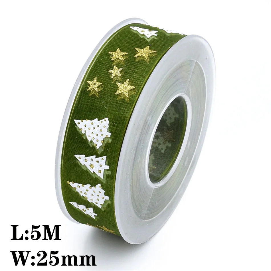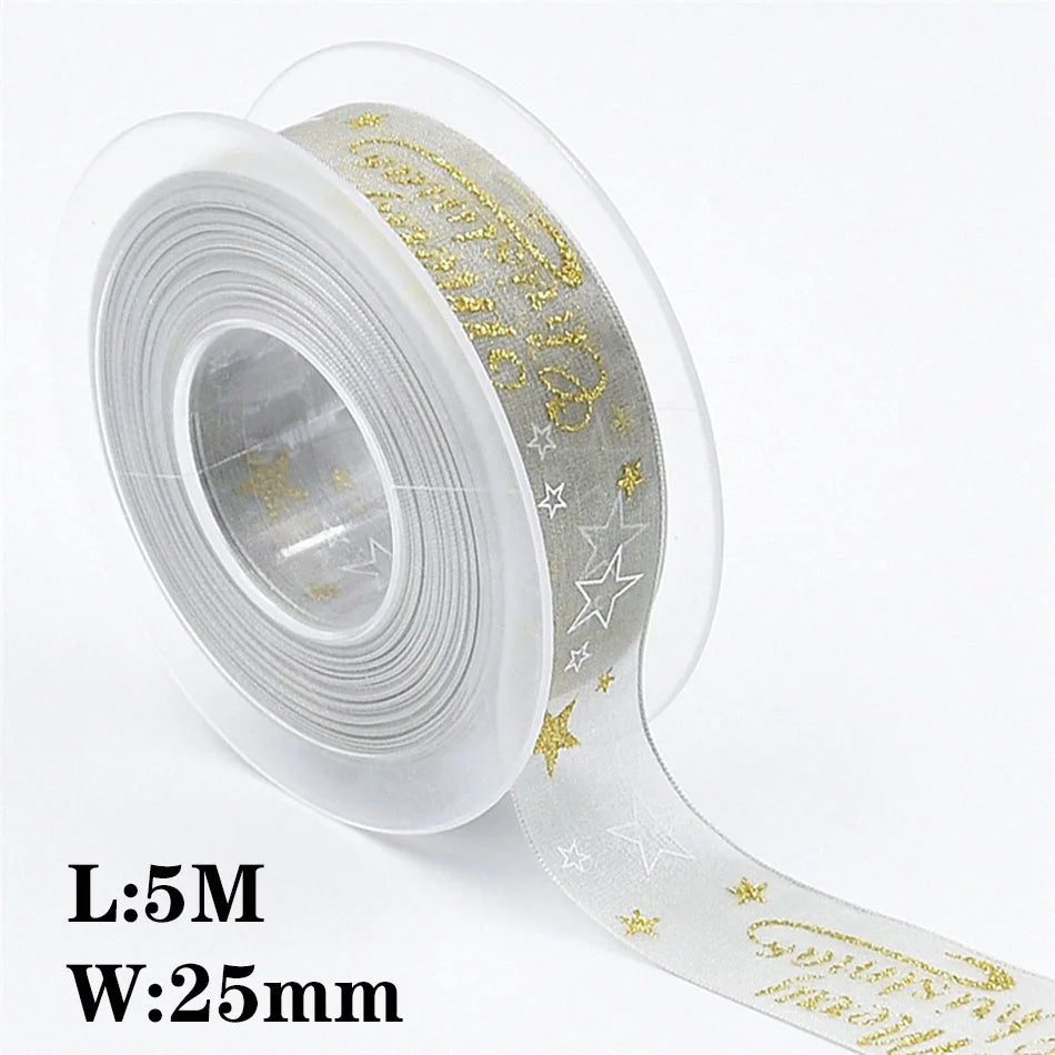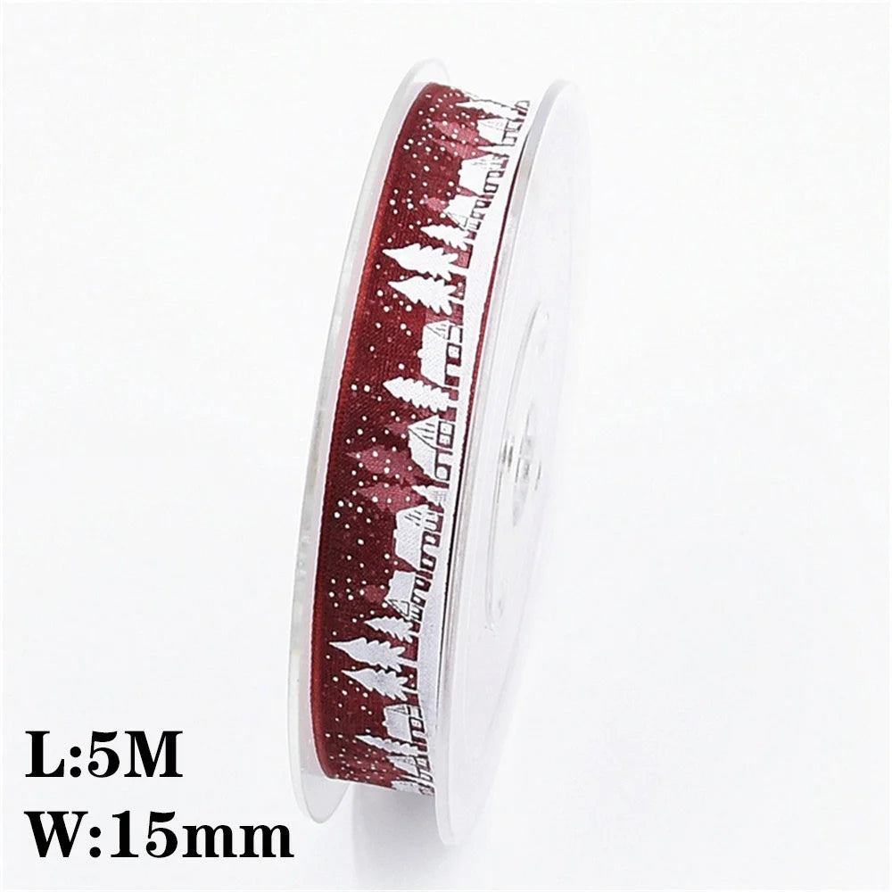 5M 10mm 15mm 25mm Christmas Satin Ribbons Crafts DIY Tape Wedding Gift Bows Natural Organza Ribbon Sewing Clothing Decoration