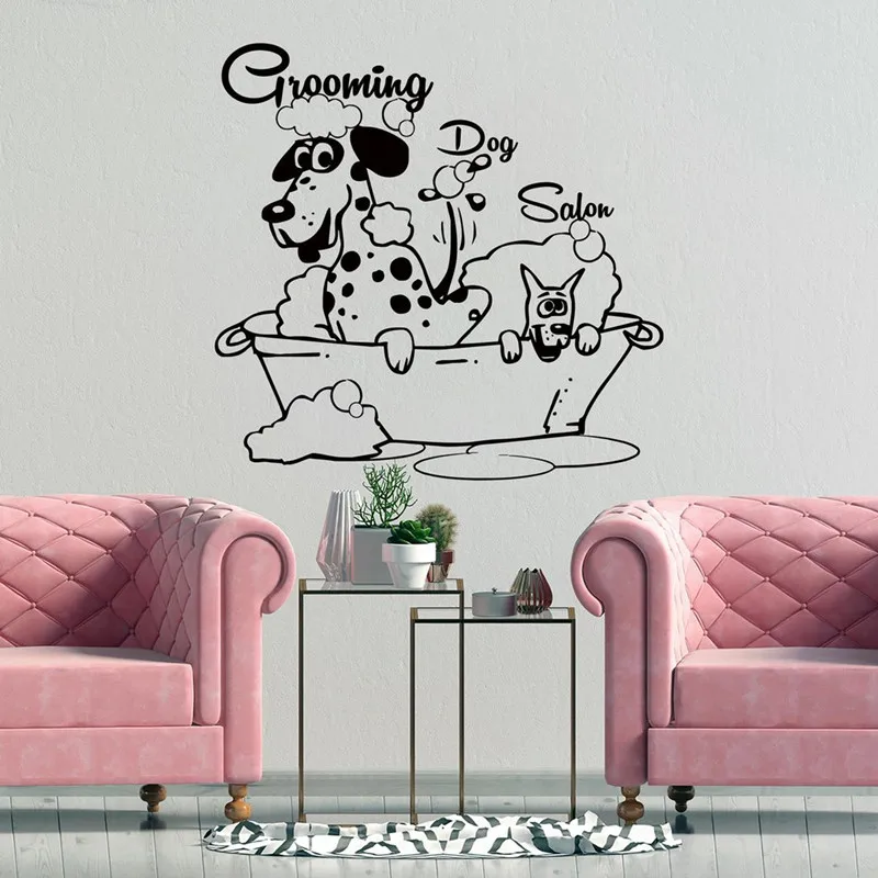 Pet Dog Grooming Wall Stickers Animal SPA Salon Shop Window Glass Decor Vinyl Wall Decals Home Pet Room Dress Up Stickers
