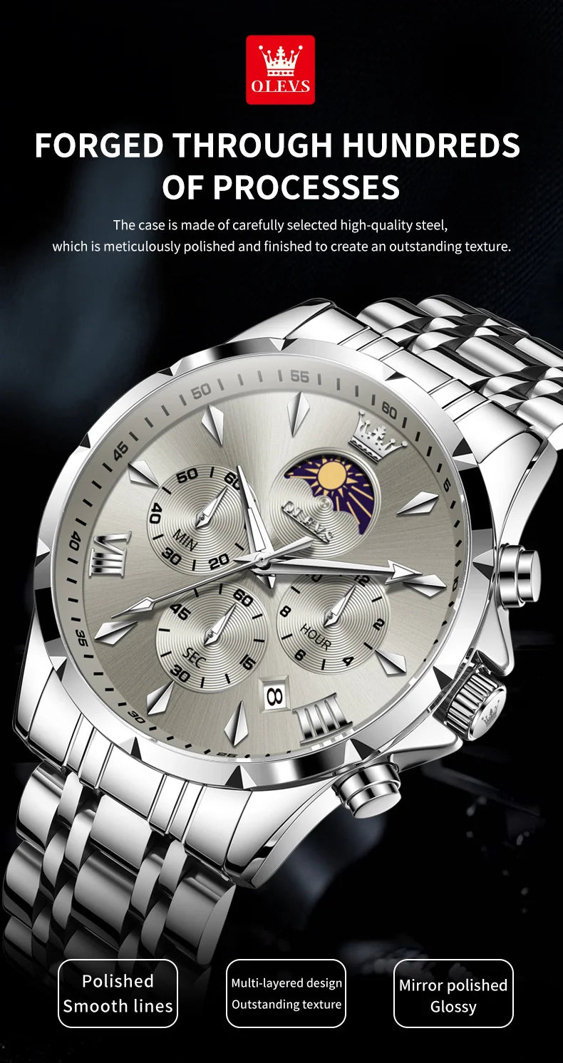 Feature: Shock Resistant,Luminous,Auto Date,Moon Phase,Water-Resistance