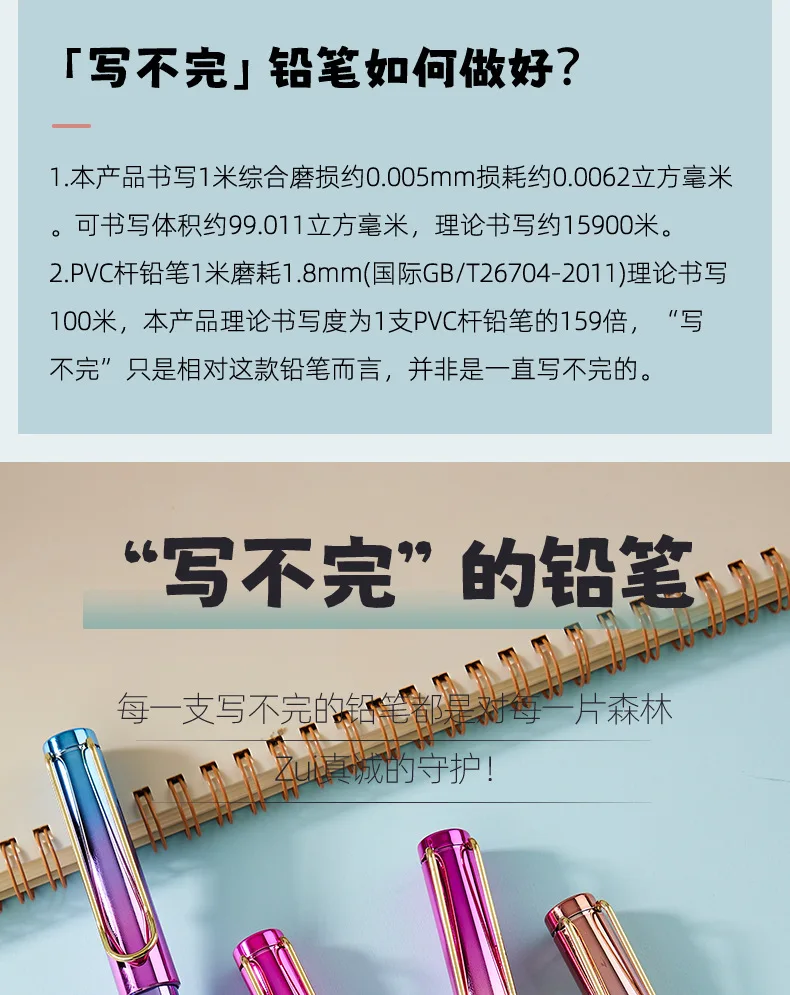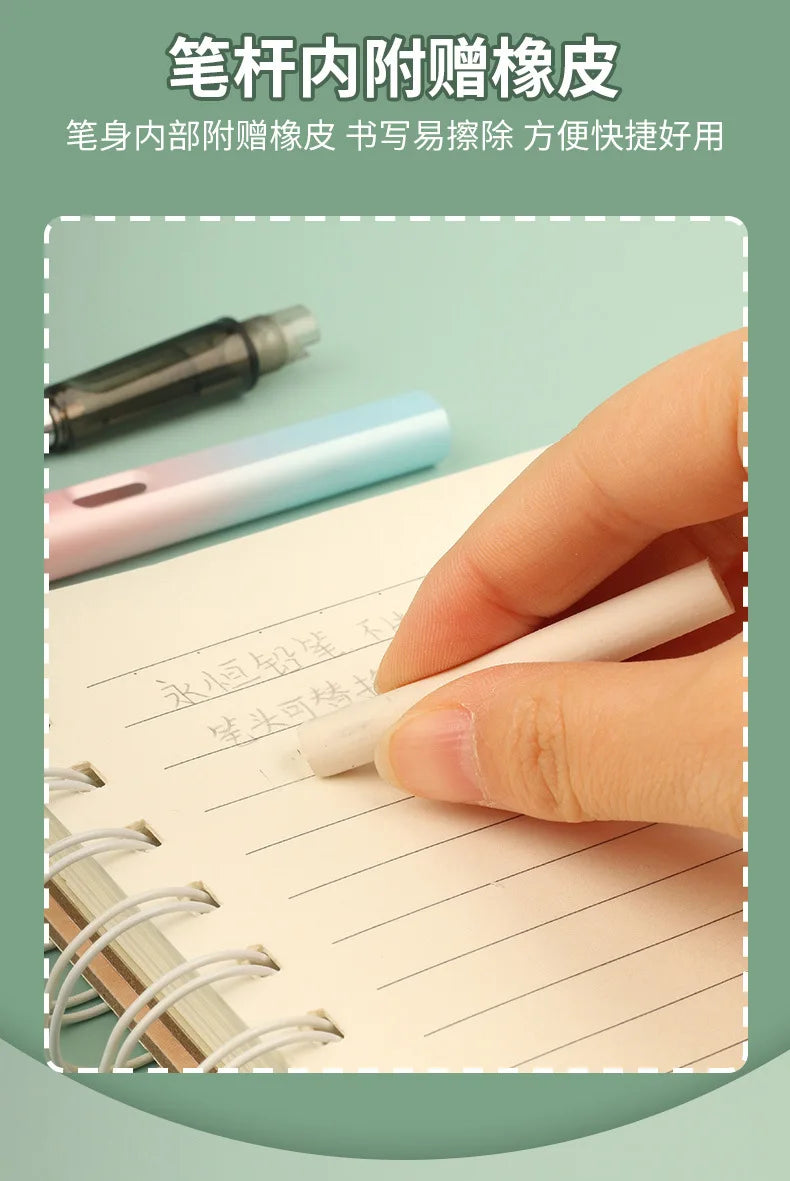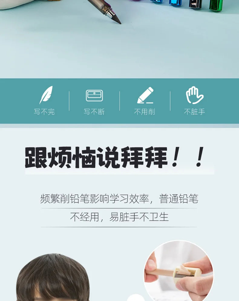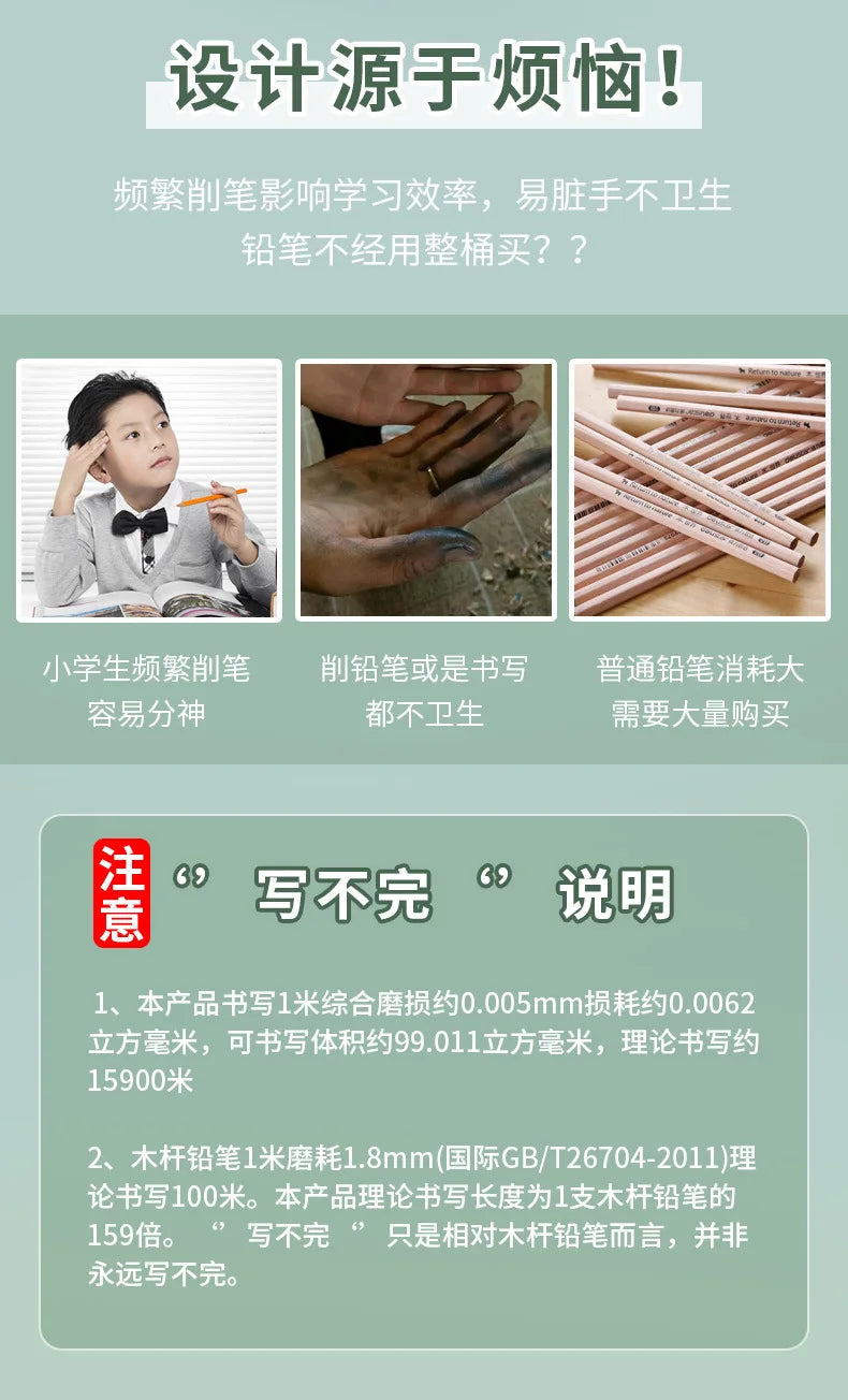 Features: New Technology Unlimited Writing Pencil, No need to sharpen pencils, the refill will not break, HB nib, sturdy and durable, 0.5mm nib, smooth writing, no ink, no dirty hands, can write 500,000 characters continuously, refill can be replaced, convenient Practical, beautiful and generous.