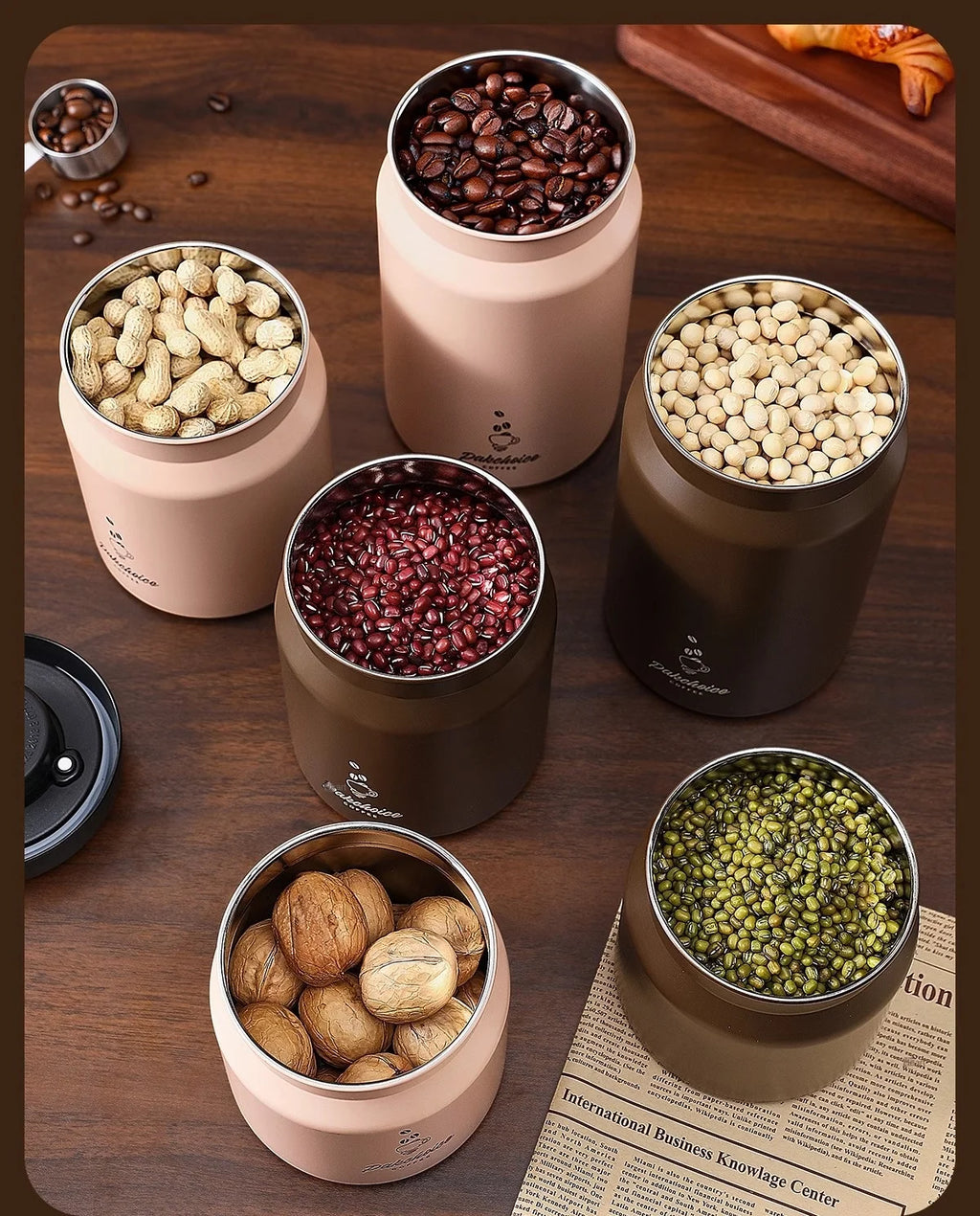 316 Stainless Steel Vacuum Coffee Storage Container Airtight Light-proof Tea Spice Food Storage Jar Kitchen Tool