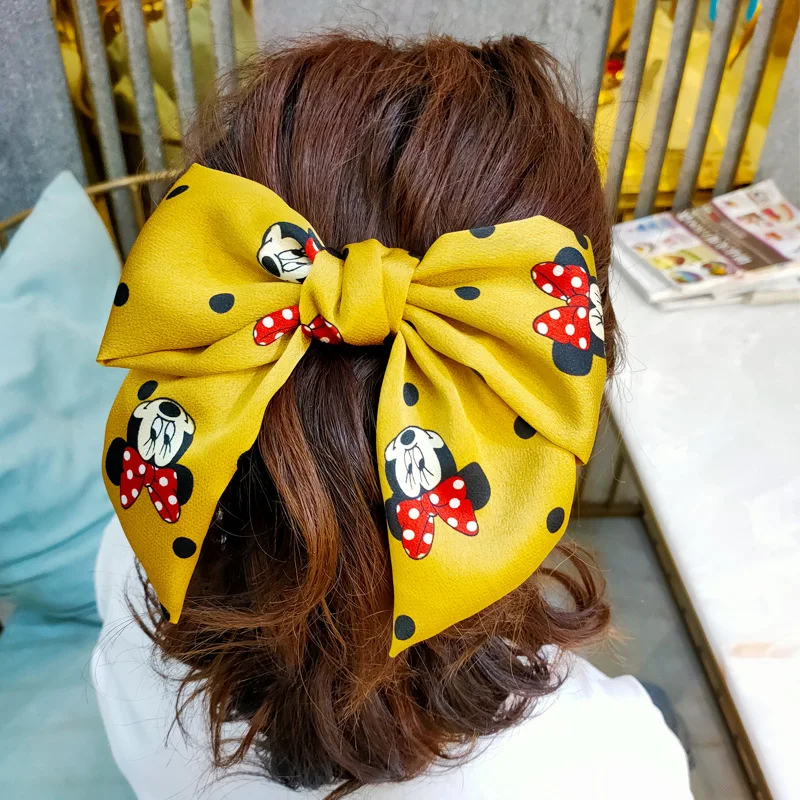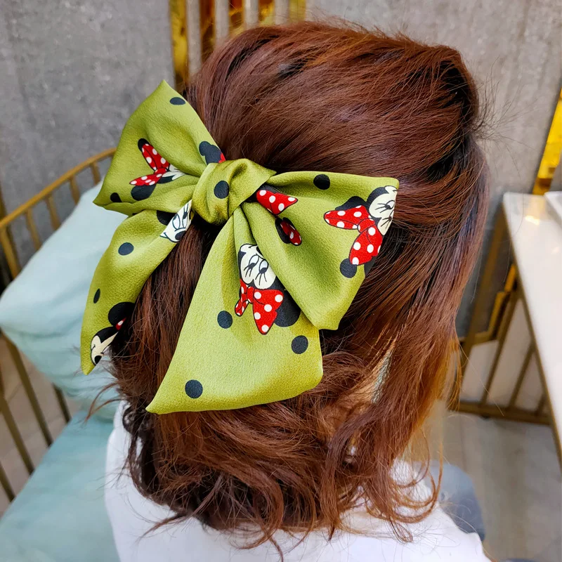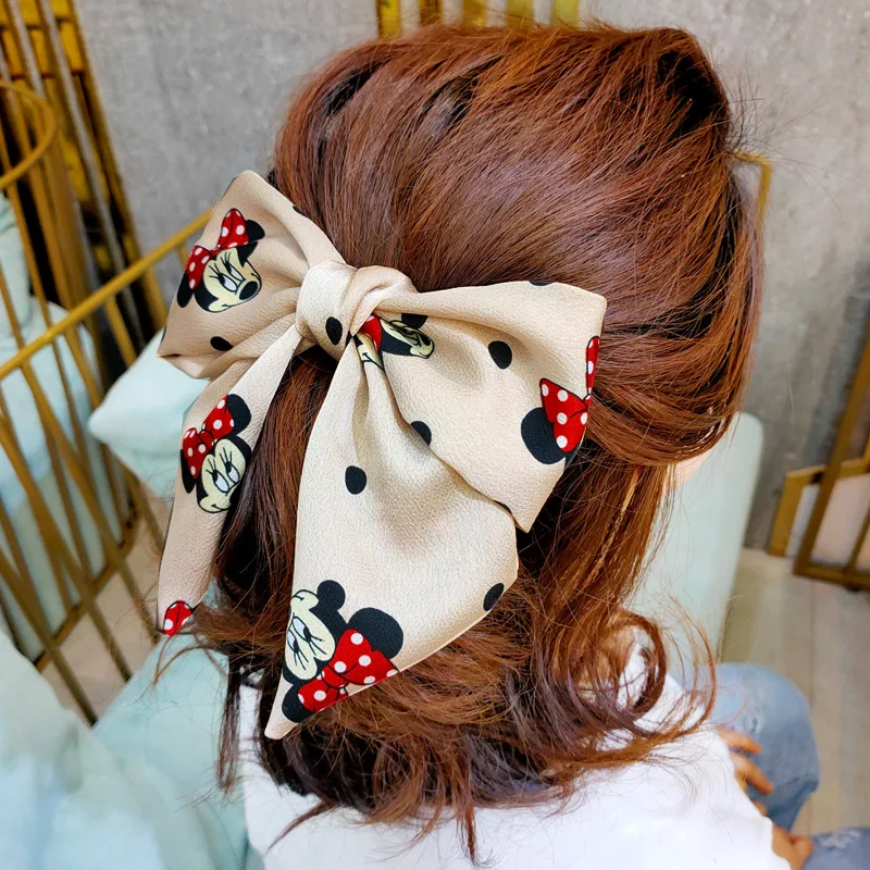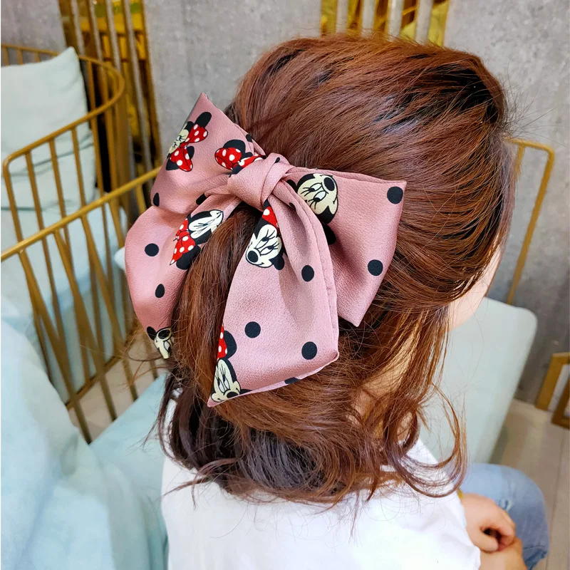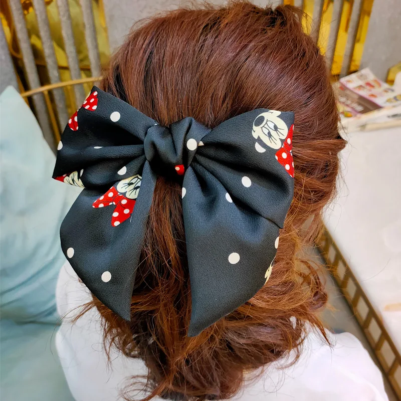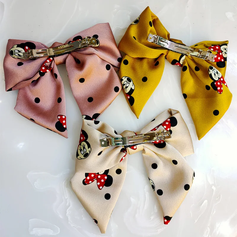 New Wide-Brimmed Mickey Bow Hairpin All-match Minnie Handmade Fabric Spring Clip Cute Girl Hair Accessories
