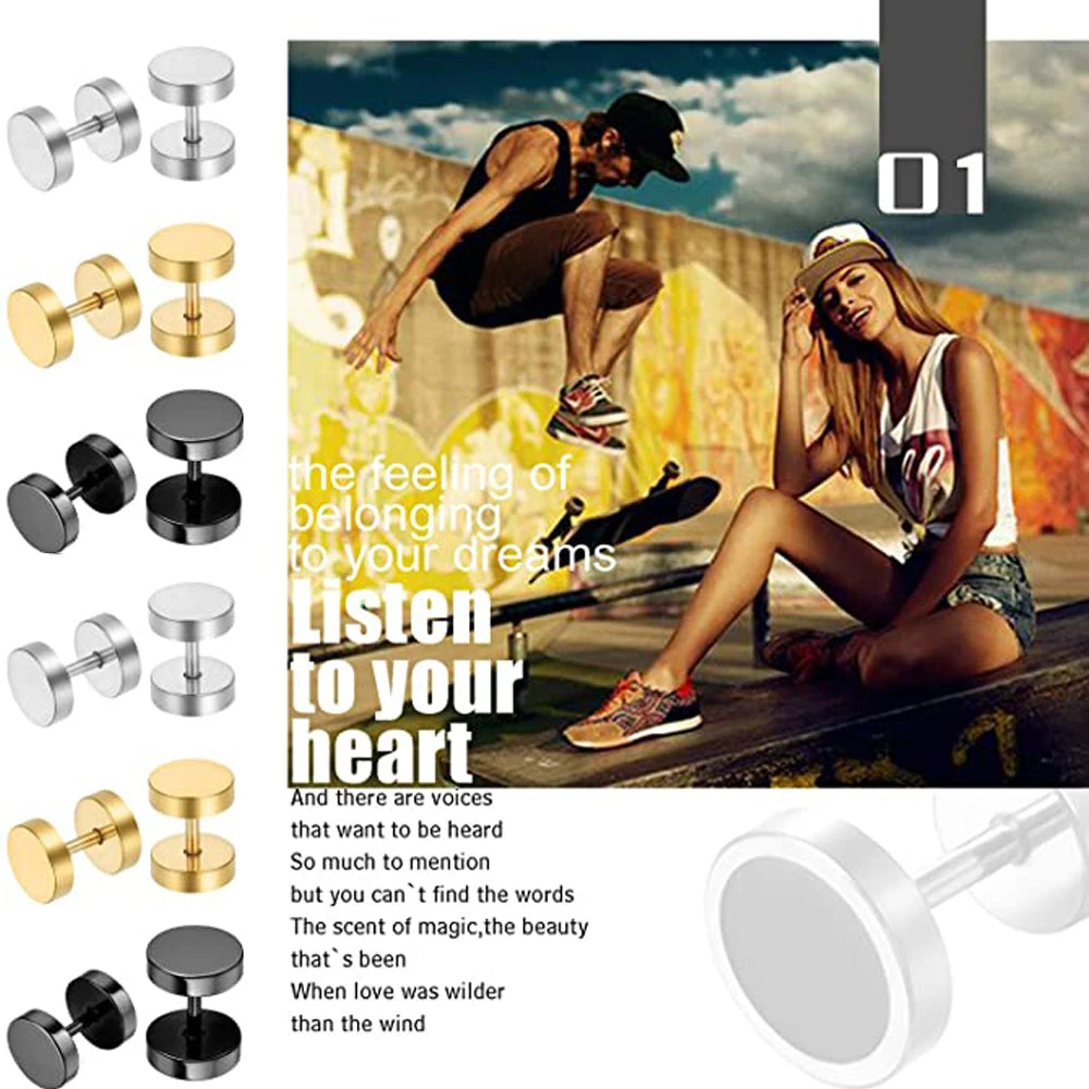 2 peças punk parafuso de aço inoxidável haltere gótico brincos para mulheres homens rua pop hip hop rock hipoalergênico brincos