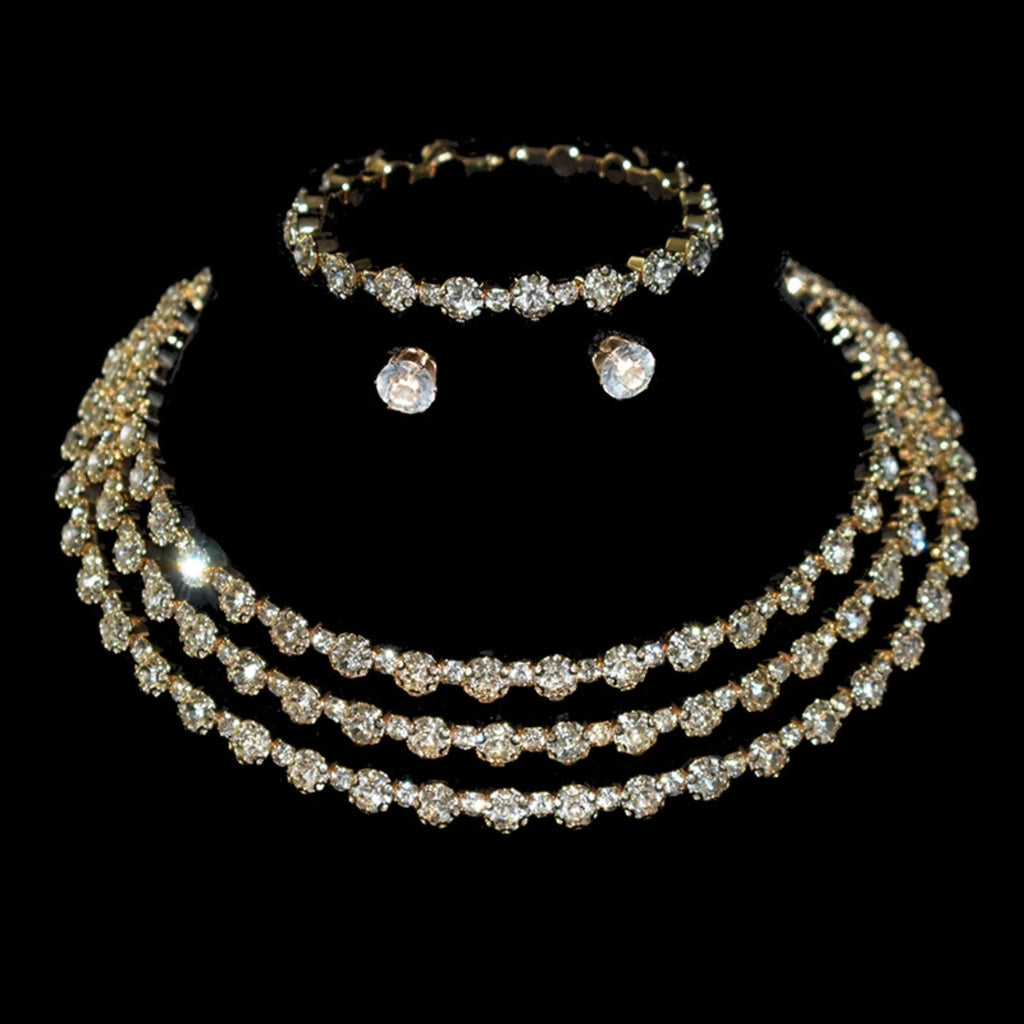 4-piece women's jewelry set with rhinestones, multi-layer collars, earrings, bracelets, wedding party accessories