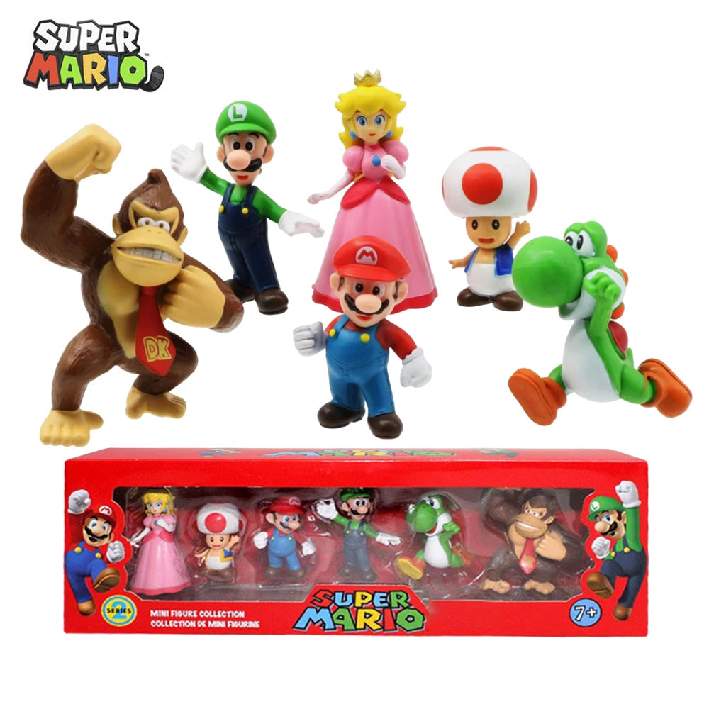 6pcs/set Super Mario Bros PVC Action Figure Toys Dolls Model Set Luigi Yoshi Donkey Kong Mushroom for kids birthday gifts