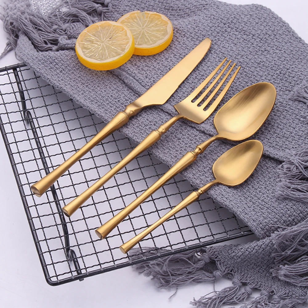 4/8/12/16/20 Pieces Gold Cutlery Set Stainless Steel Tableware Sliver Dinnerware Mirror Knife Fork Spoon Set Matte Flatware Silverware For Hotel Restaurant Home Party