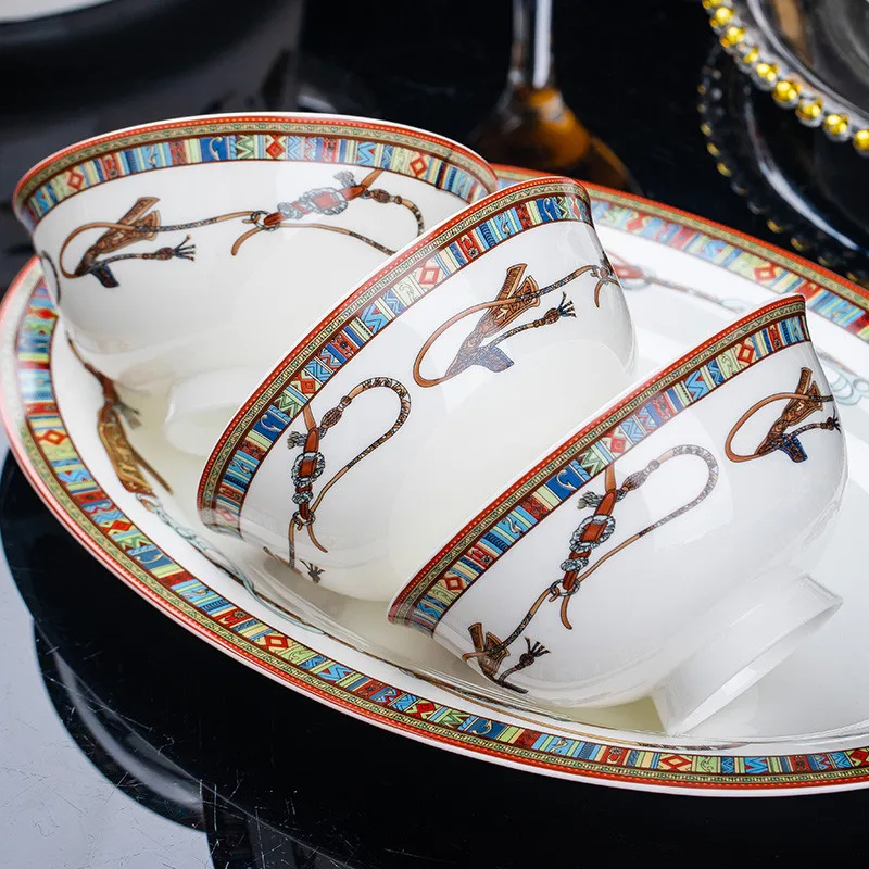 Bone China Ceramic Tableware Set European Style Luxury Kitchen Dinner Bowl Plate Spoon Combination Wedding Gift Horse Finished