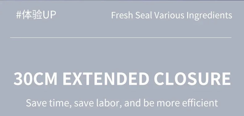 【 】 Experience the power of our food vacuum sealer, equipped with a purple light sterilization system for top-notch food safety. Its extended wide sealing design ensures a tight seal, keeping your food fresh and reducing waste.