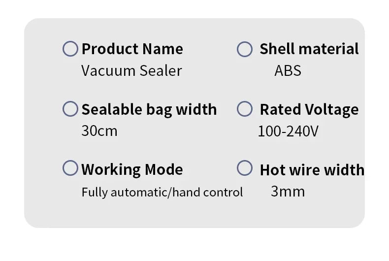Step into the future of food preservation with our Electric Vacuum Sealer, a marvel of modern kitchen technology designed to revolutionize the way you store and preserve your food. This sleek, user-friendly device boasts a purple light sterilization system that ensures your food is stored in the safest possible conditions. With its extended wide sealing design, it guarantees a tight, leak-proof seal, keeping your food fresh for longer and reducing waste. Whether you're sealing dry or moist foods, the vacuum sealer's dual mode functionality caters to all your preservation needs.