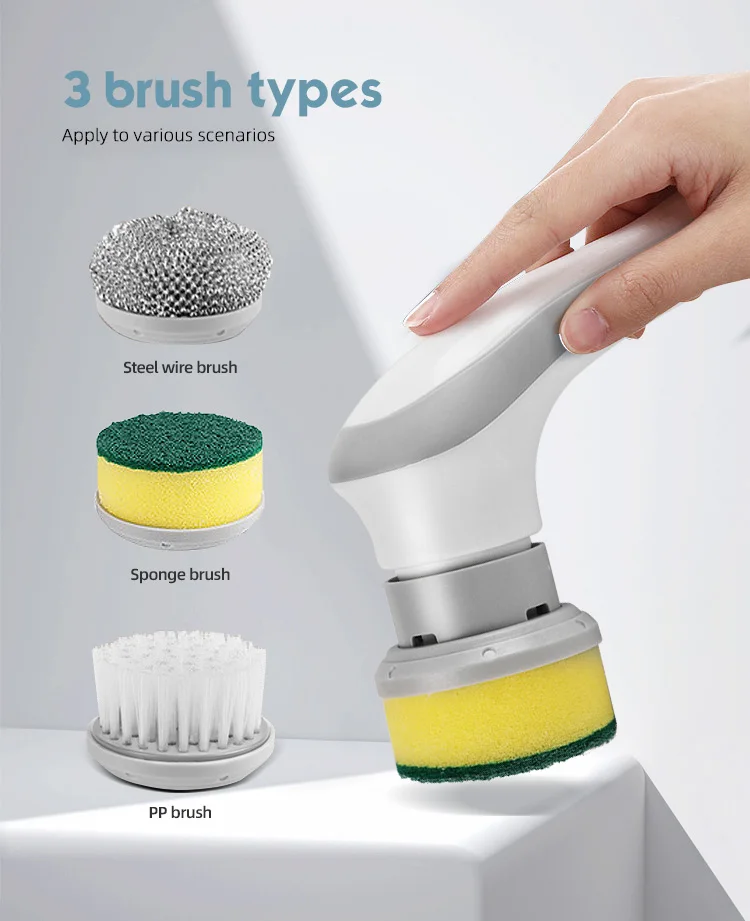 【3】 Design ergonômico| O purificador elétrico para limpeza oferece uma pegada segura e confortável para uma limpeza sem esforço.Esta escova de limpeza motorizada mantém suas mãos longe de sujeira e produtos químicos agressivos