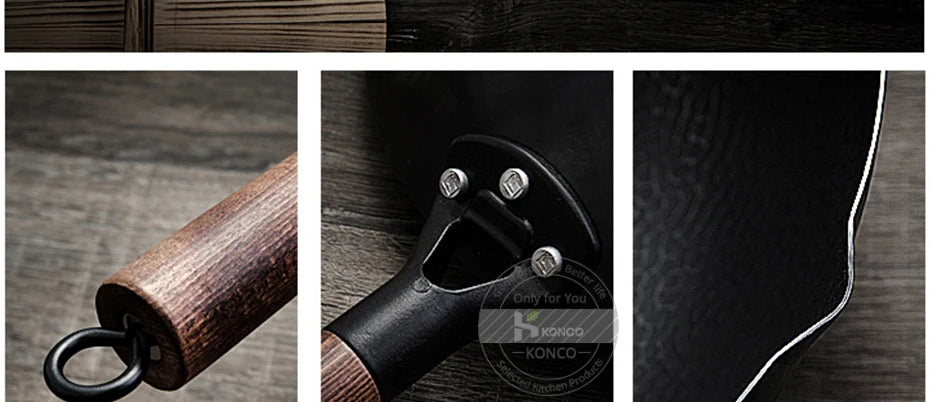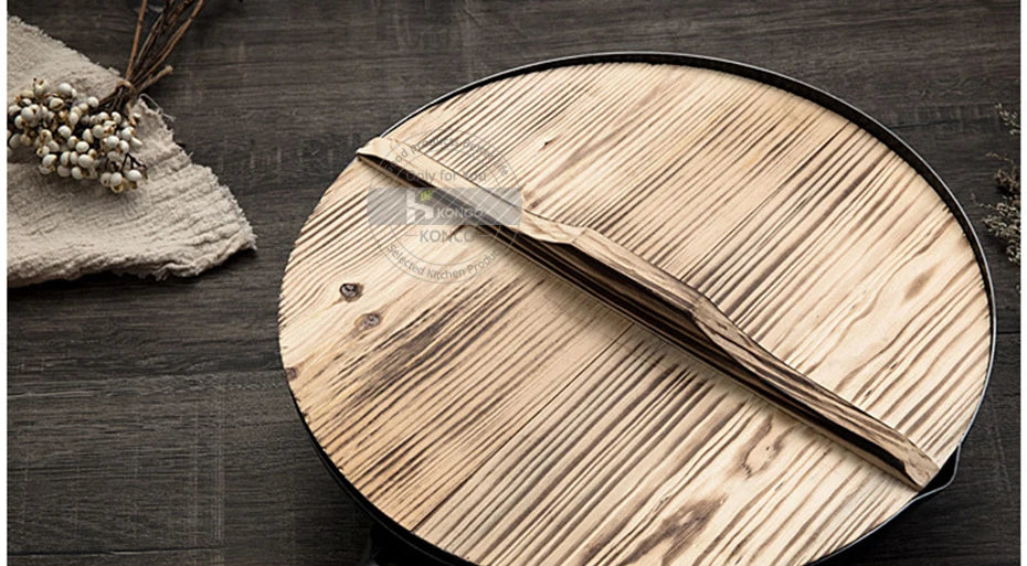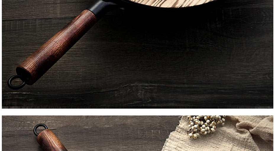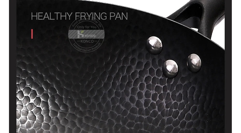 Konco Pure Iron wok cast iron pan Non-coated Pot General use for Gas and Induction Cooker 32cm Chinese Wok Cookware Pan