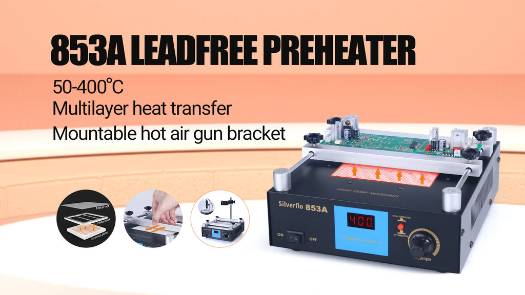 Hot air rework station temperature range: 100-480°C