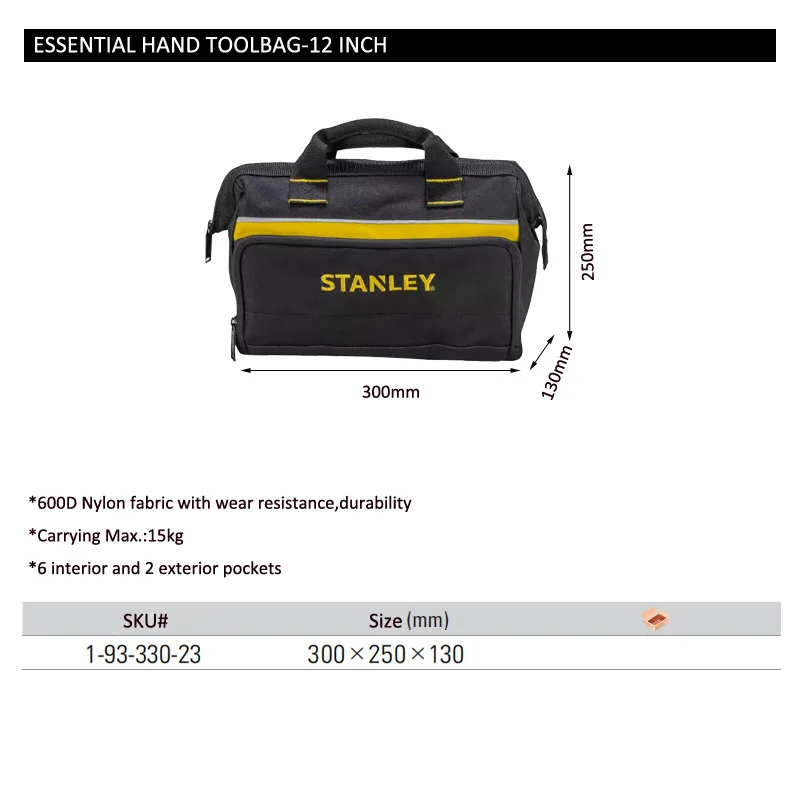 Stanley 12 Polegada 1-93-330 600 Denier encanadores Ferramenta Eletricistas Sacos Luz Ferramenta Portátil Saco De Armazenamento Reforçado Base 8 Bolsos