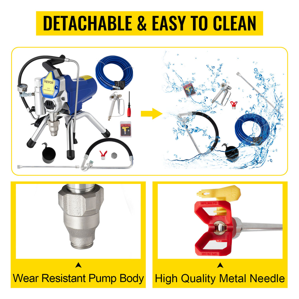 VEVOR Airless Spraying Machine Professional Ultra Silent Wall Paint Spray Gun 3000PSI-Pressure 2.5L/Minute-NoLoad Displacement