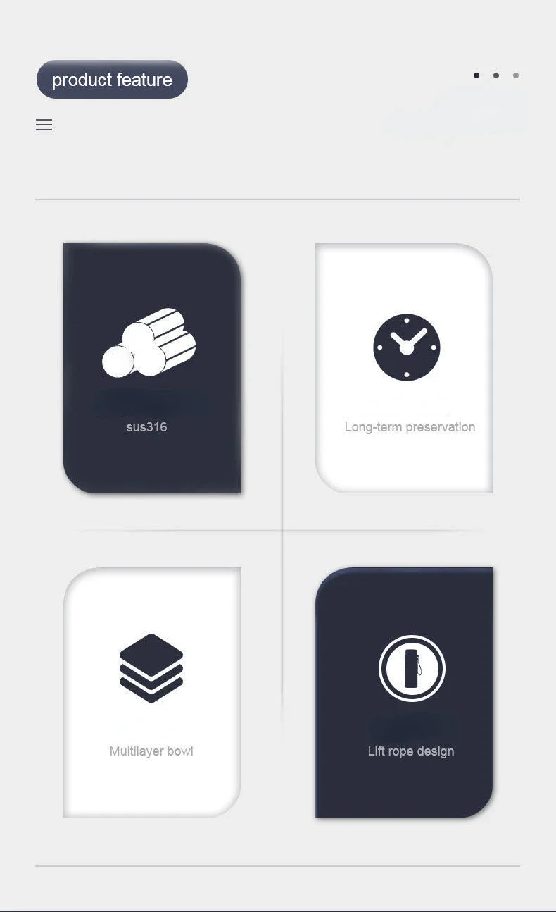 Function : With lifting rope and tea drain, portable, vacuum, heat preservation