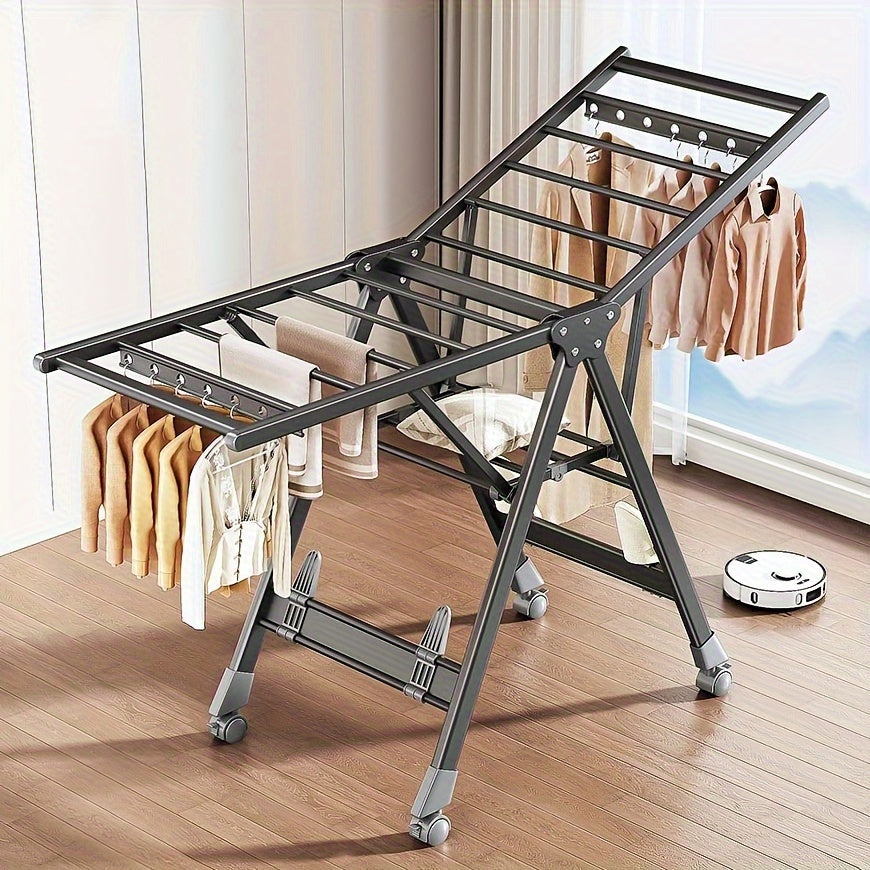 Rust-Resistant & Heavy-Duty: Made of premium aluminum, this laundry drying rack is water and rust-resistant! The thickened tube ensures enhanced stability, The triangle structure offers fantastic stability to hold up to 132.2LBS weight capacity and avoid collapsing or toppling over, even when holding a full load of laundry