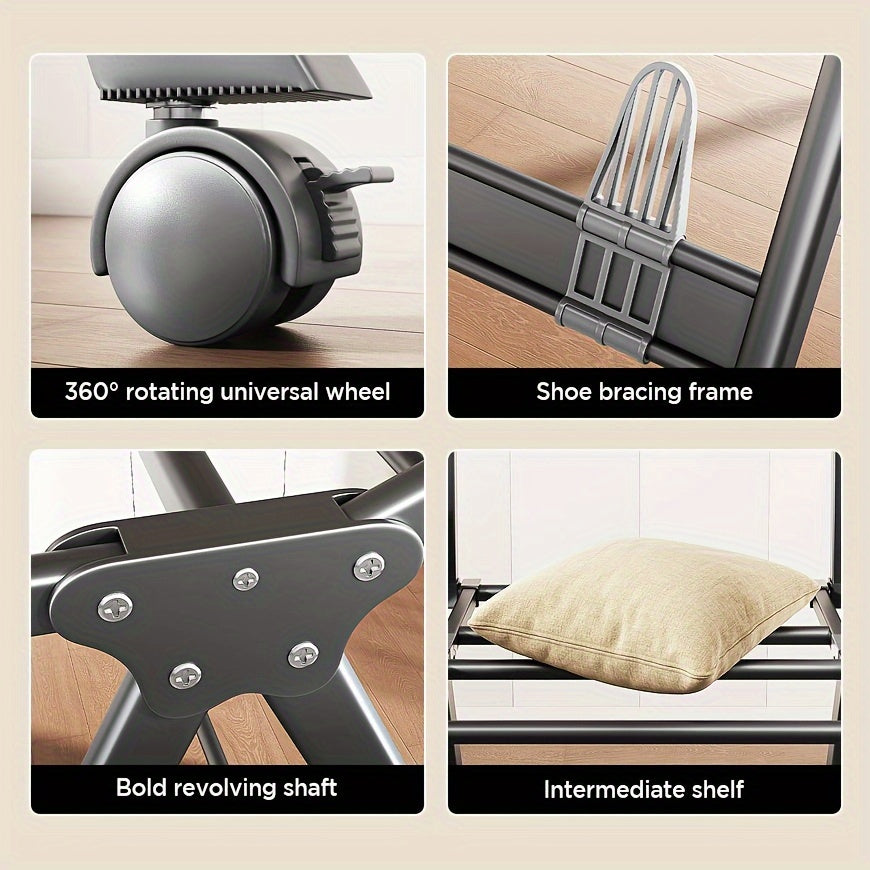 Movable Design: The base of the clothes dryer rack is equipped with universal Tires, making it easy to move to any drying position. The Tires are equipped with brakes to prevent the rack from moving during the drying process