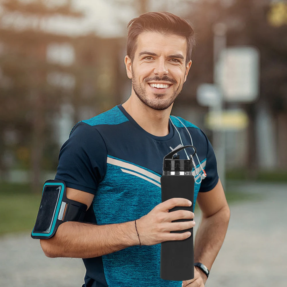 750ml Straw Double-Layer Insulated Cup with Handle Portable Water Cup Stainless Steel Sports Water Bottle for Cold Hot Beverages