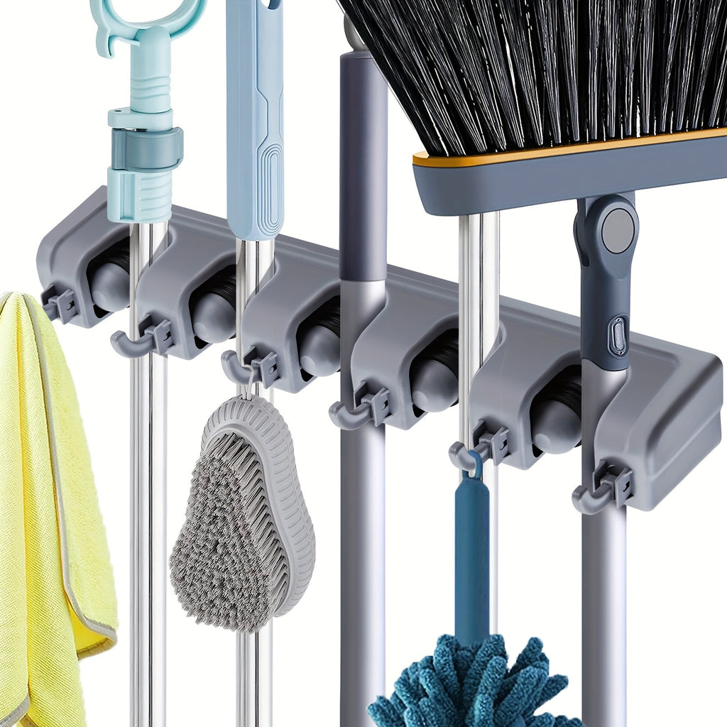 A versatile mop holder - Whether it's indoors or outdoors, this sturdy mop holder can assist in saving space. Ideal for the kitchen, closet, bathroom, garage, utility room, office, and more. Free up space - Reject disorderly closets or scattered items. Organize your brooms, mops, rakes, garden tools, and more! With its compact size and sleek design, this garage organization system is the ideal solution.