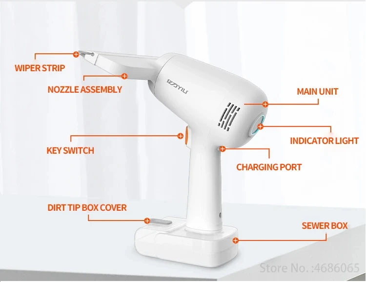 Cordless Window cleaner mainly used for household cleaning work, simple appearance and comfortable design, Convenient, tangle-free cleaning. Quick and easy to clean window, mirror, tiles, worktops. Battery Indicator - Plan your cleaning task confidently and effectively. Squeeze head help make no smears for a sparkling finish.