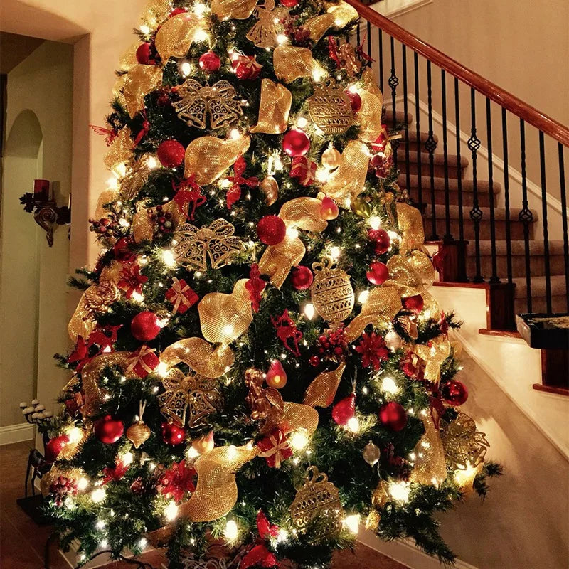 Christmas Knitted Ribbon for DIY, Wreath Bow, Home Tree Decorations, Christmas Gifts, New Year 2025, 1 Roll