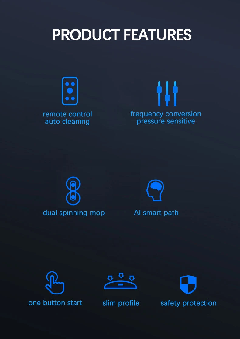 1. Wait 20 seconds after starting up until the blue light stops flashing,Then start working. Because the robot needs 20sec to detect the glass plane.