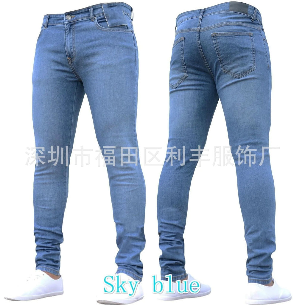 Casual Men Jeans Pencil Pants Streetwear Skinny Denim Full Length Slim Trousers Slight Strech Europe America Zipper Fly Jeans
