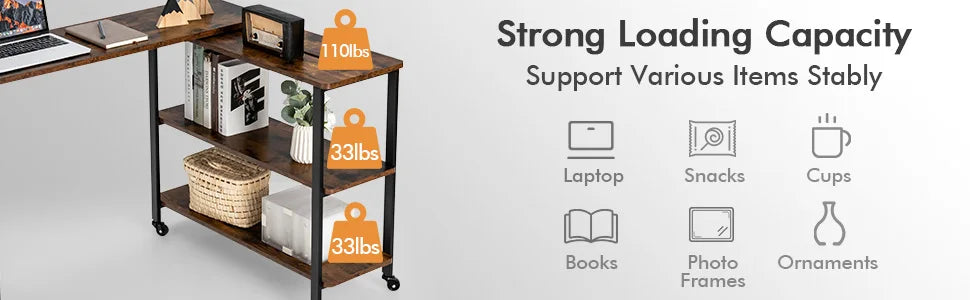 Large 360° Free Rotating Sofa Side Table, Patented Mobile Couch Desk with 2-Tier Storage Shelves, Movable Laptop Table