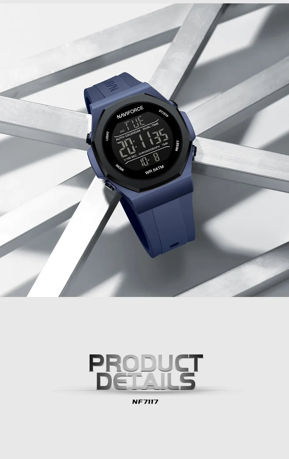 Feature: 50m waterproof, Shockproof, Time, Day and Date Display