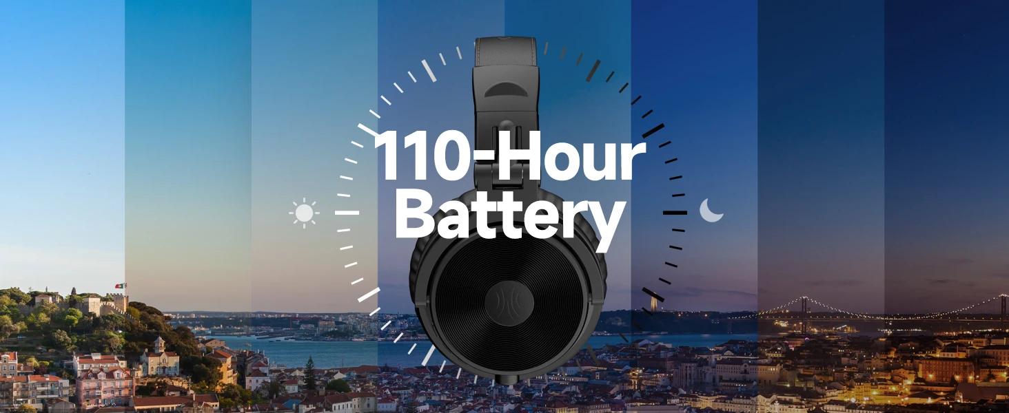 The wireless mode: A built-in 1000mAh battery provides up to 1100 hrs play time in a single charge. Wired mode: you can also use it as a wired headphone with the provided audio cable so the headphones will never power off.