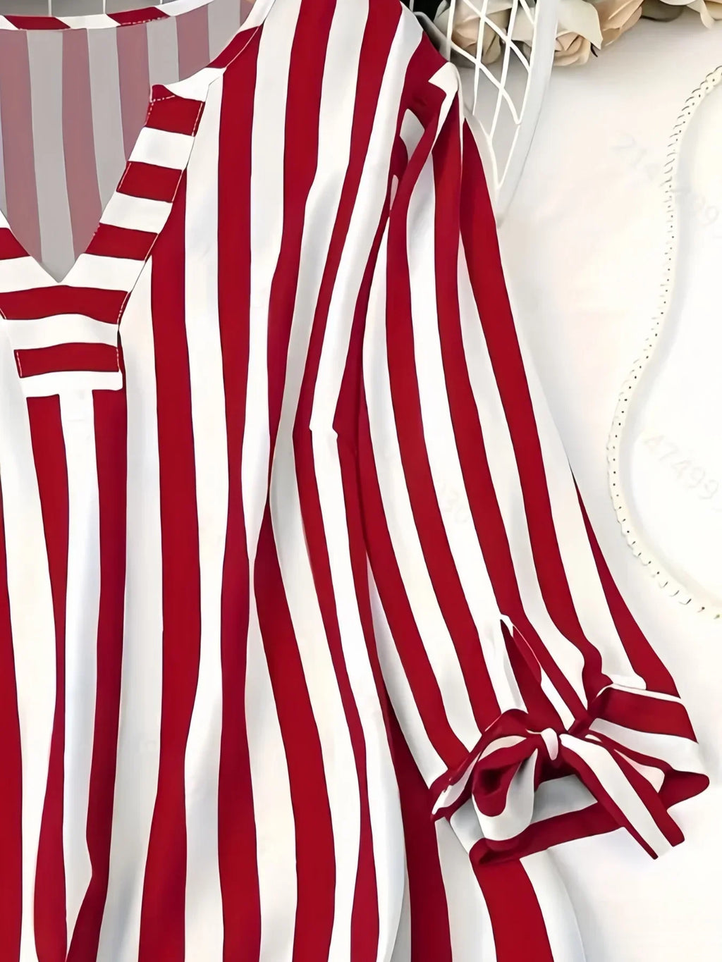 Spring Plaid T-shirt V-neck Jumper Light Breathable European and American Style Beach Travel Clothes