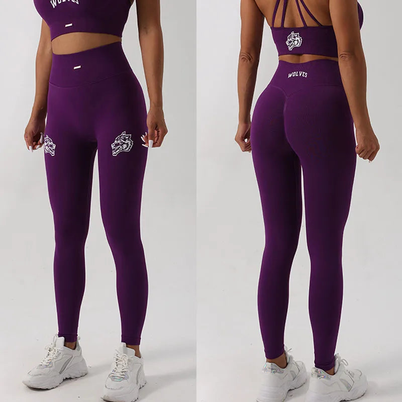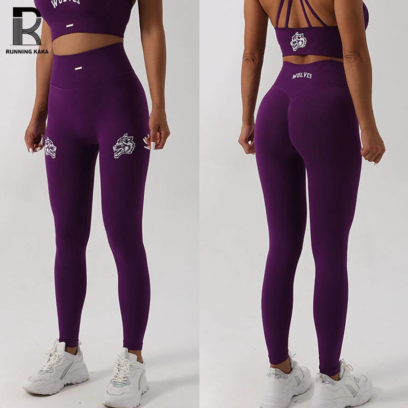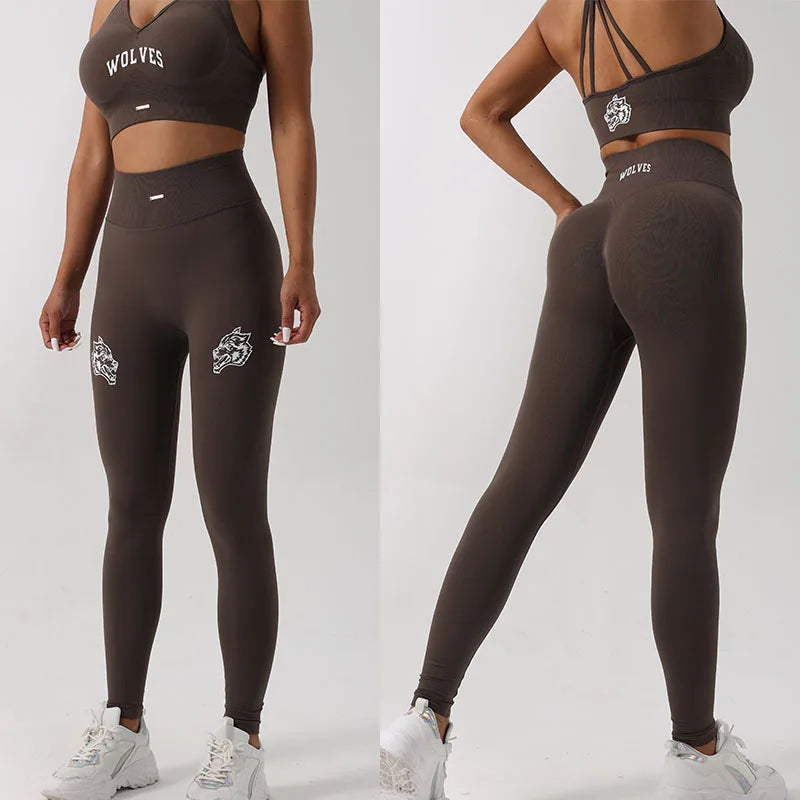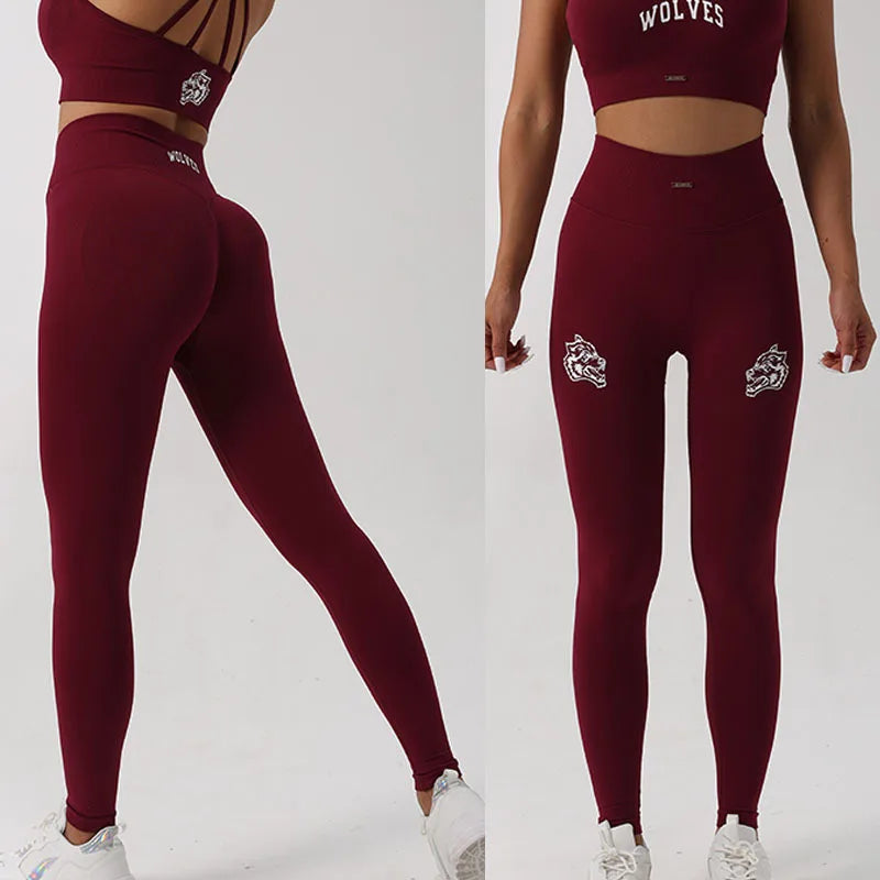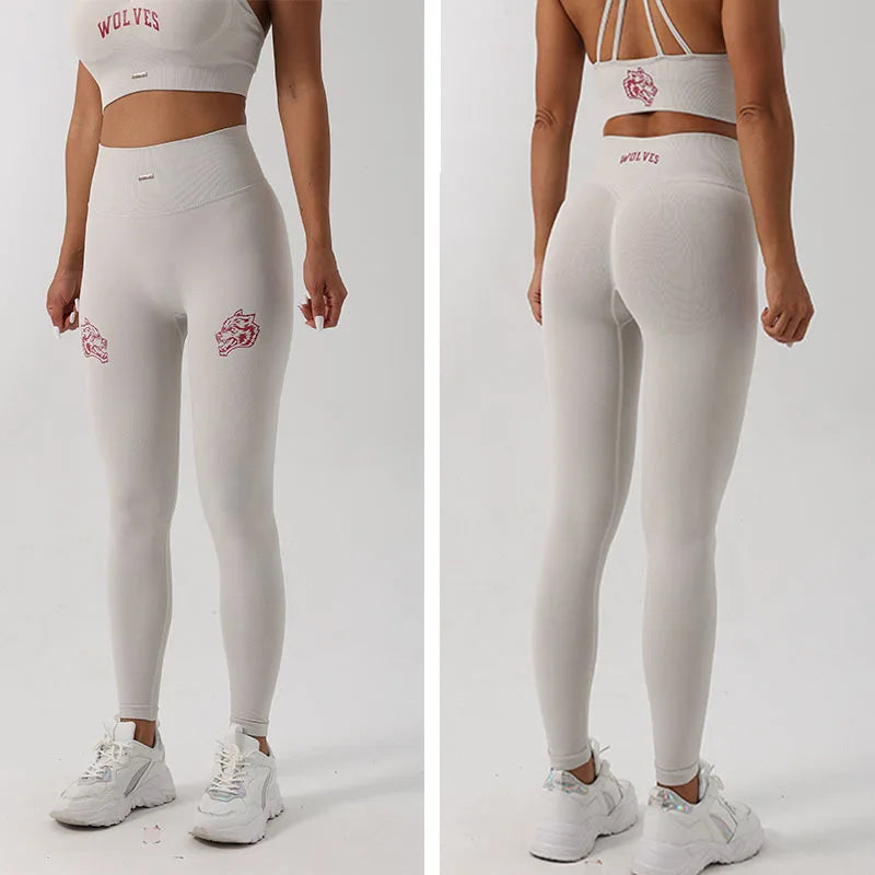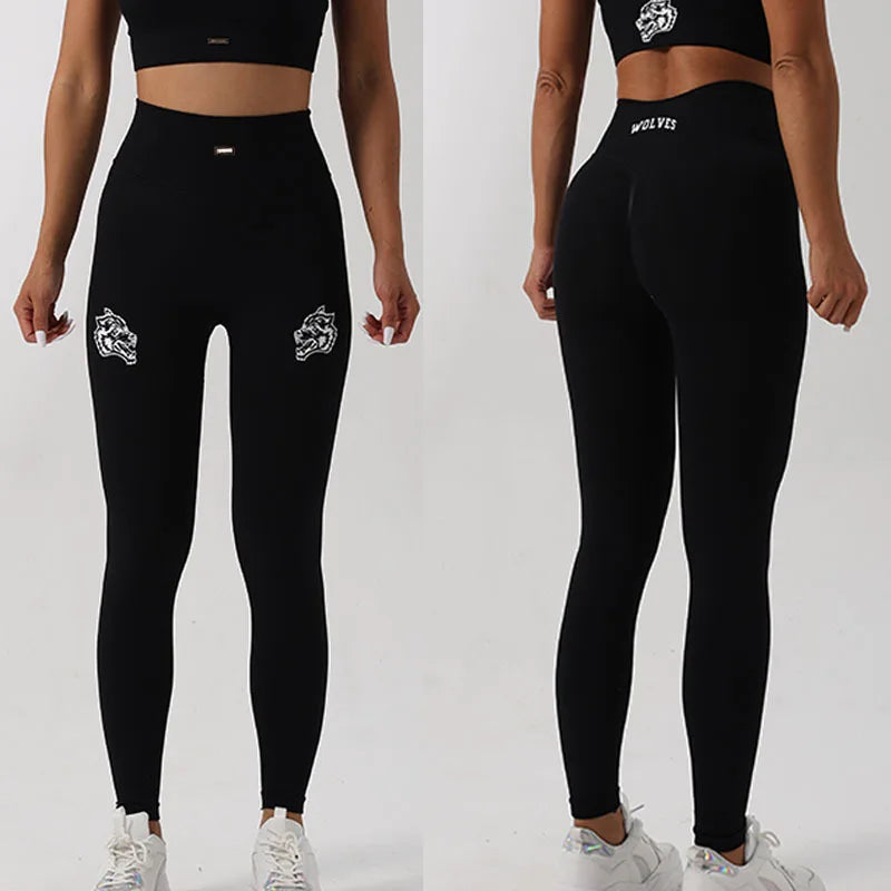 Design : printed letters high waisted tights butt lifter tummy control