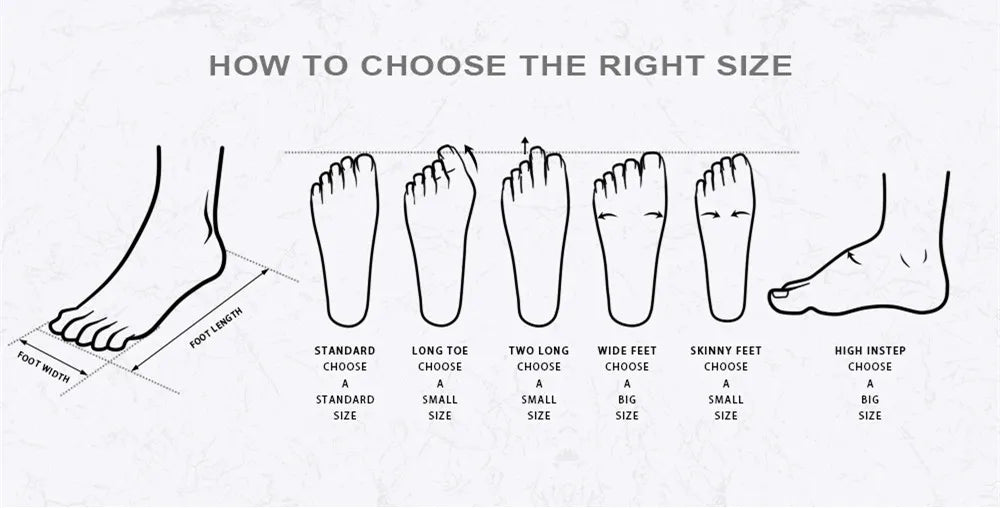 Before you make the order, you should be careful to measure your feet length (from heel to toe), Then judge your foot shape and then you should pay more attention to our size table. You can find suitable size for you in our size table. Finally, you decide what size you buy.