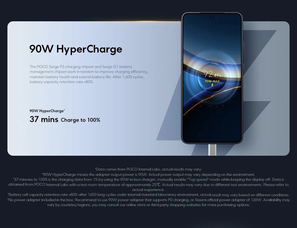 Battery: 6000mAh(typ) battery, 90W HyperCharge